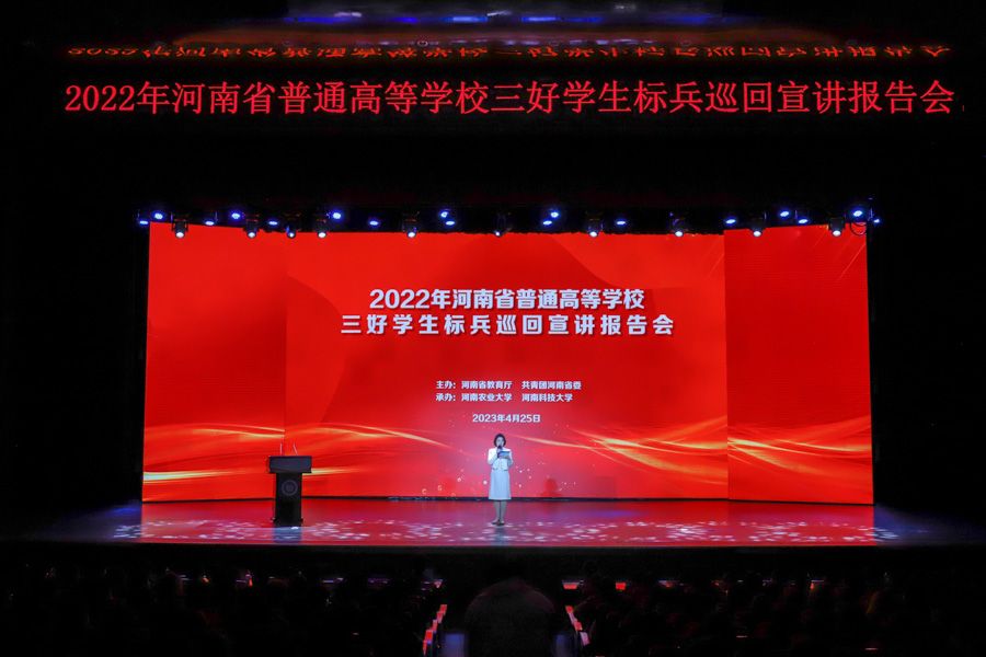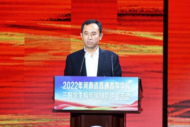 校新闻中心讯 4月25日下午,河南省2022年普通高等学校三好学生标兵巡回宣讲报告会豫西专场在我校举行。校党委副书记孟伟、河南省教育厅学生工作处一级主任科员李慧永出席报告会。报告会由河南省教育厅、共青团河南省委主办,正规博彩平台承办。来自正规博彩平台、洛阳师范学院、洛阳理工学院、河南推拿职业学院、洛阳职业技术学院、洛阳科技职业学院、河南林业职业学院、洛阳文化旅游职业学院等8所驻洛高校1200余名师生代表现场聆听了报告会。