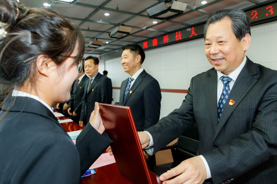 商学院团委书记张毅、河洛书院冯兰茜分别代表获奖集体和个人发言;校团委学生会主席团成员王一诺带领团员青年重温入团誓词。