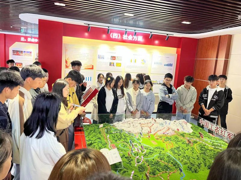 中国道路体验中心是集教学、展览、体验、展演、制作于一体的多功能思想政治理论课实践教学平台。团支部成员跟随讲解员王亚苹老师,认真参观展柜里的相关文献资料及文物,重温党史、追忆革命岁月,让团员青年们进一步了解那段风起云涌的历史。
