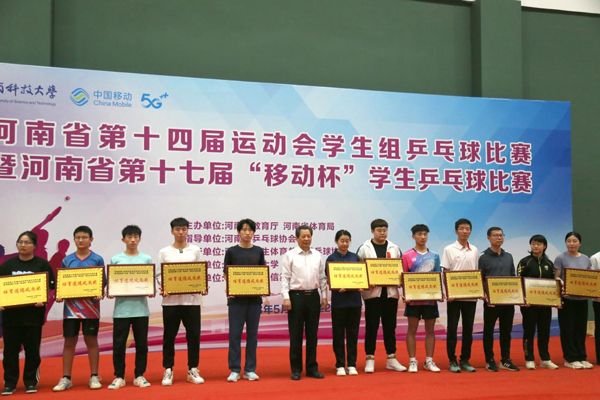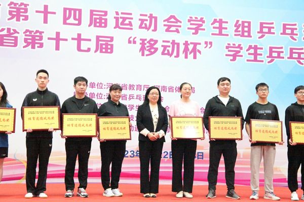 校新闻中心讯 5月28日,由河南省教育厅、河南省体育局主办,正规博彩平台承办的2023年河南省第十四届运动会学生组乒乓球比赛暨河南省第十七届学生乒乓球比赛在我校圆满闭幕。校长孔留安、副校长侯小改出席闭幕式,并为获奖选手颁奖。