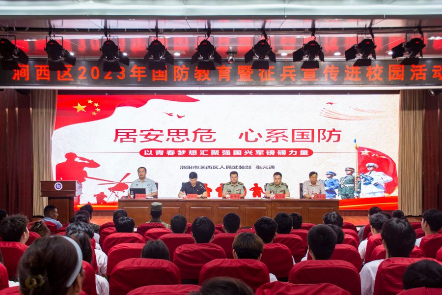 校新闻中心讯 为提升青年学子国防意识,培养爱国热情,强化使命担当,助推学校国防教育高质量发展,6月5日下午,我校在医学教师发展中心举行2023年国防教育暨征兵宣传活动。涧西区委常委、武装部部长赵伟涛,涧西区武装部副部长张元通等出席会议,学校党委武装部、学院(书院)辅导员及学生代表参加会议。会议由党委武装部部长李文涛主持。