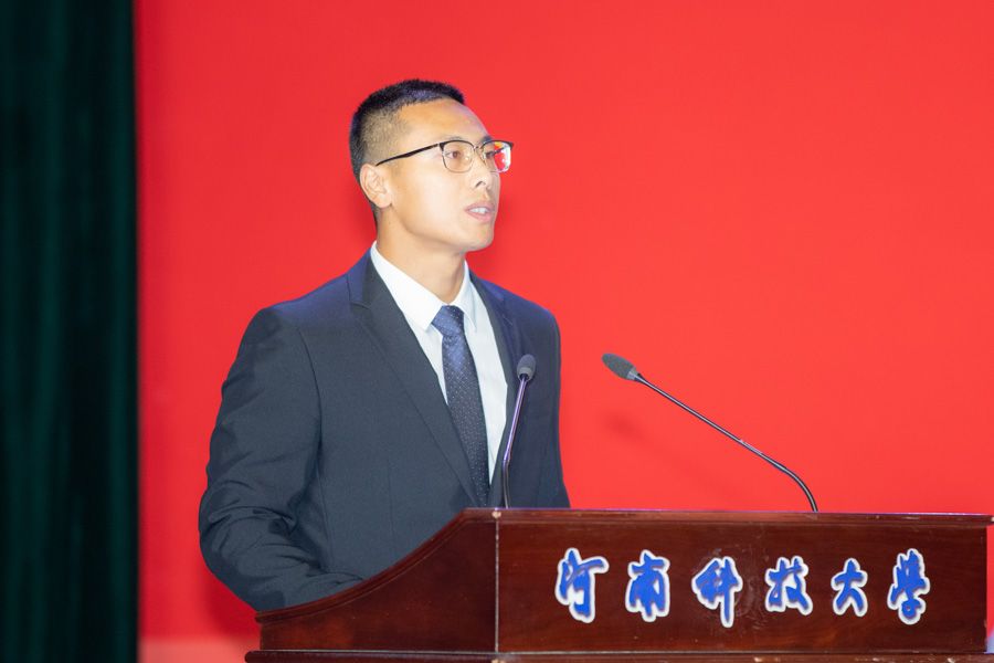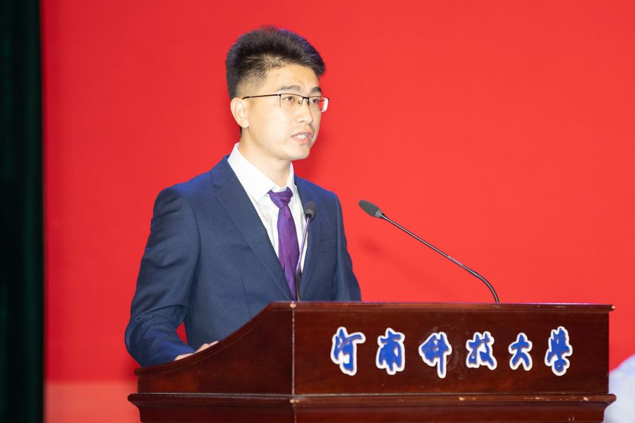 在校研究生代表、商学院邱应龙发言,表示将坚定理想信念,认真踏实,勤勉刻苦,不负时代,不负韶华,用实际行动为学校的发展进步贡献青春和力量,并祝愿学长、学姐们一帆风顺、鹏程万里。