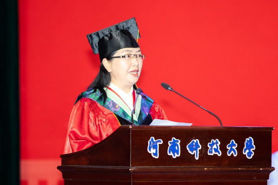 研究生导师代表郑瑞娟教授在发言中鼓励毕业生们要追求理想,永不言弃,既要有挥斥方遒的豪情,更要有脚踏实地的作风,敢“想”敢“为”,善于学习,把握机会,把命运牢牢地掌握在自己手中,勇往直前,做生活的强者。