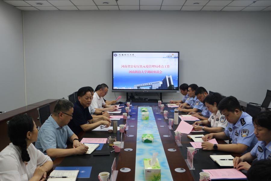 洛阳市公安局治安和出入境管理支队出入境管理大队负责人、学校国际合作与交流部相关人员参加调研座谈。