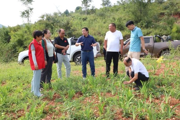 我校河南省中药材产业科技特派员服务团侯典云教授、农学院吕强博士、园艺与植物保护学院王树和副教授等科技志愿者们深入田间地头,仔细观察农作物生长情况,与农户进行面对面交流,并对大雨淋村的血参、苦参、射干等中药材种植过程中遇到的技术难题进行现场解答,积极为农户解决急难愁盼,为农作物增产增收保驾护航。