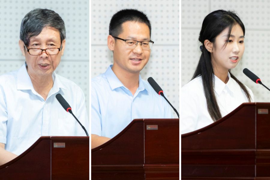 荣休教师代表、化学化工学院刘泽民,优秀教师代表、金属材料磨损控制与成型技术国家地方联合工程研究中心潘昆明,学生代表、艺术与设计学院王一诺先后作典型发言。