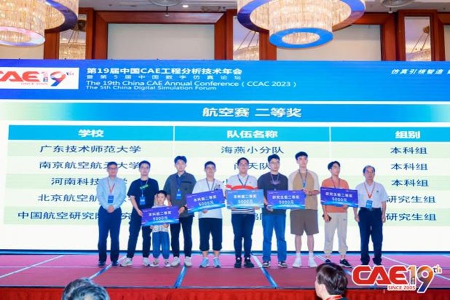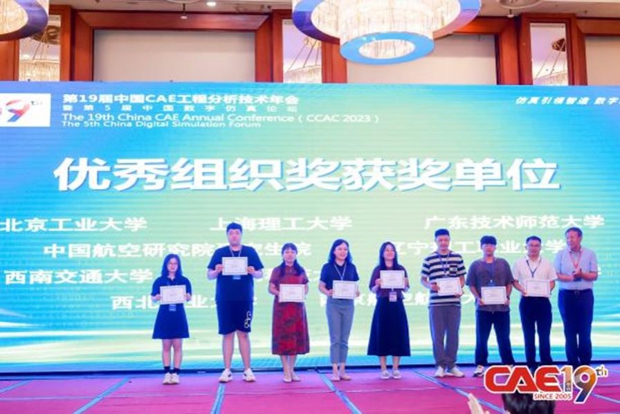 校新闻中心讯 近日,第19届中国CAE工程分析技术年会暨第五届中国数字仿真论坛在中国厦门举行。我校土木建筑学院工程力学专业宁惠君老师带队参会。大会进行了“云道杯”中国数字仿真大赛,经过作品初审、线下决赛等环节的激烈角逐,我校学子脱颖而出并取得了优异成绩。本科生刁东明、陈鑫组成的“小牛练习生”荣获航空赛二等奖,林明明、李品豫组成的“恒心队”荣获创新赛三等奖,同时我校获本届竞赛优秀组织奖。