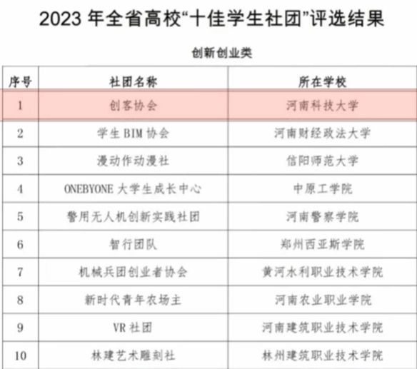 校新闻中心讯 近日,中共河南省委教育工作委员会、河南省教育厅公布2023年全省高校“十佳学生社团”评选结果,我校农学院(牡丹学院)“创客协会”被评为全省高校创新创业类“十佳学生社团”。