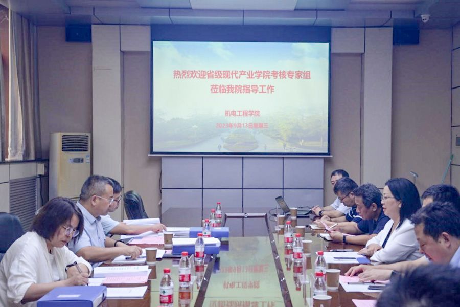 机电工程学院副院长王晓强详细汇报了产业学院建设和运行情况。专家组就产业学院建设框架、机构设置、运行机制、人才培养模式、课程体系改革以及资金条件保障等方面与参会人员进行广泛的交流,对产业学院的建设和运行情况给予充分肯定,并提出多项有益可行的意见和建议。