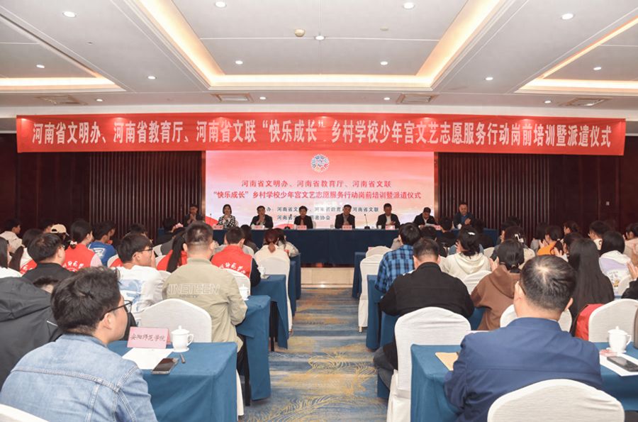 校新闻中心讯 10月8日,由省文明办、省教育厅、省文联主办的2023年下半年“快乐成长”乡村学校少年宫文艺志愿服务行动岗前培训暨派遣仪式在郑州举行。我校艺术与设计学院、体育学院的4名大学生志愿者参加培训,并将开始支教志愿服务工作。