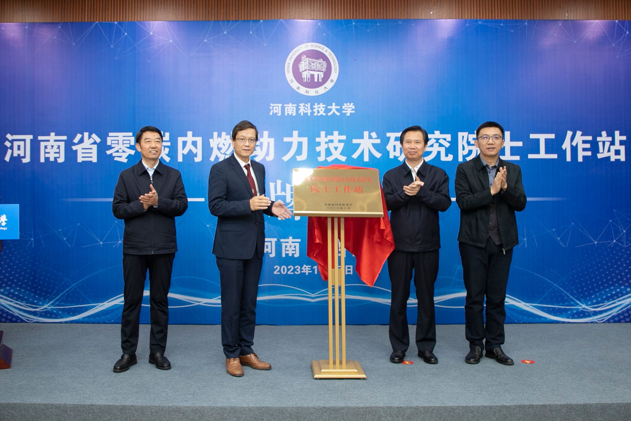 校新闻中心讯 11月7日,由中国工程院外籍院士赵华领衔的河南省零碳内燃动力技术研究院士工作站在我校揭牌成立。省委常委、洛阳市委书记江凌,中国工程院外籍院士赵华,校党委书记、校长王洪彬,省科技厅副厅长潘刚出席揭牌仪式,并共同为院士工作站揭牌。这标志着洛阳市在汇聚高端人才、推动产学研深度融合方面又迈出重要一步,也将有力推动我校“双一流”大学创建和洛阳先进制造业高质量发展。