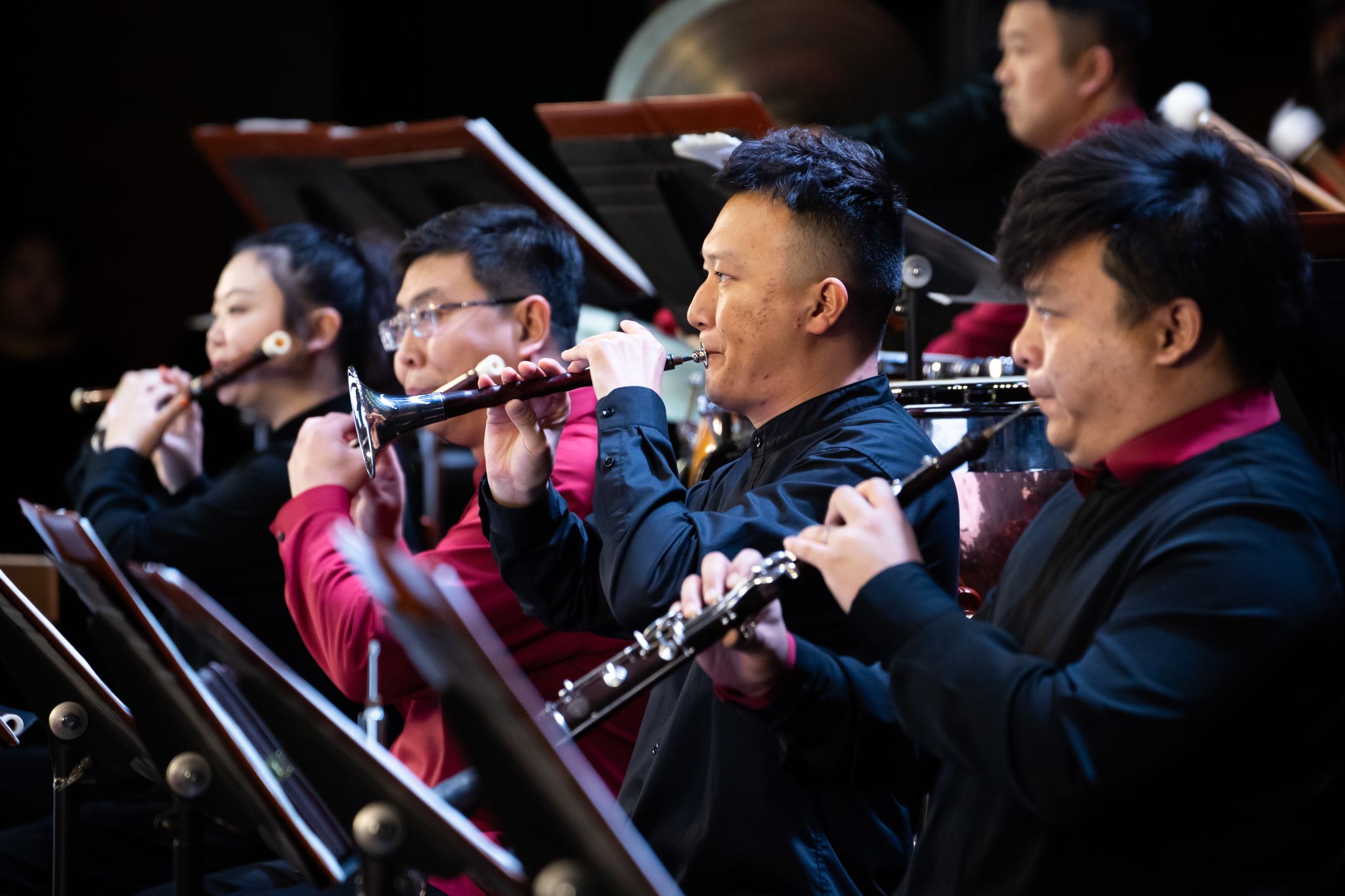 一曲旋律喜庆风趣,节奏明快热闹的民族管弦乐《山村节日》拉开了音乐会的序幕,展现了乡村田野的节日盛况和人们载歌载舞的喜悦心情;中国大鼓二重奏《牛斗虎》,通过相遇、相戏、相斗三个乐段,为观众展示出牛之倔强凶悍,虎之威武勇猛;曾多次获得全国、全省比赛金奖的唢呐独奏《百鸟朝凤》以热闹欢快的曲调,将群鸟争鸣、生机勃勃的自然美景展现眼前,将音乐会推向了高潮;压轴节目民族管弦乐《瑶族舞曲》,加演作品《花好月圆》乐曲轻快活泼,与观众的掌声融为一体,演出在互动和愉快的音乐中完美落幕。此场精彩演出让师生们在感知高雅艺术魅力的同时提升了乐器艺术文化素养,充分彰显出了中国民族乐器的魅力。