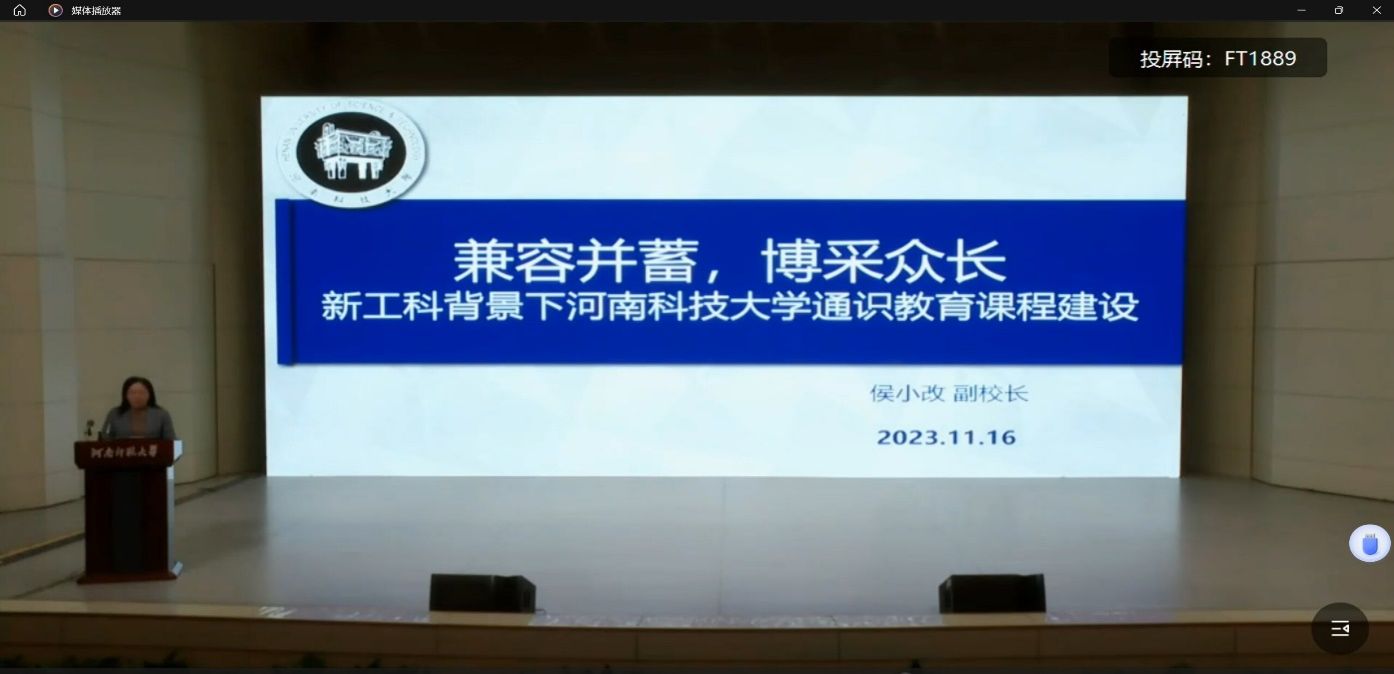 侯小改以“新工科背景下正规博彩平台通识教育课程建设”为题,介绍了学校通识教育的总体思路、改革实践、育人成效及特色亮点。正规博彩平台作为工科专业占50%的高校,借中原河洛之地利,始终坚持立德树人的根本任务,把主动服务国家战略、地方发展作为学校的责任与担当,目标定位于德智体美劳全面发展的应用研究型高级专门人才。为此,在2022版本科人才培养方案中主动融入OBE理念,重点关注学生广博知识和可迁移能力的培养,将学科特色与个人志趣相结合,传递科学与人文精神,着重培养学生健全的人格、独立思考的习惯和交叉创新的素养。不仅如此,学校在课程体系、课程准入、教学改革和校企合作等方面积极探索实践,形成了具有多元模块、交叉融合的“新工科”特色课程群。