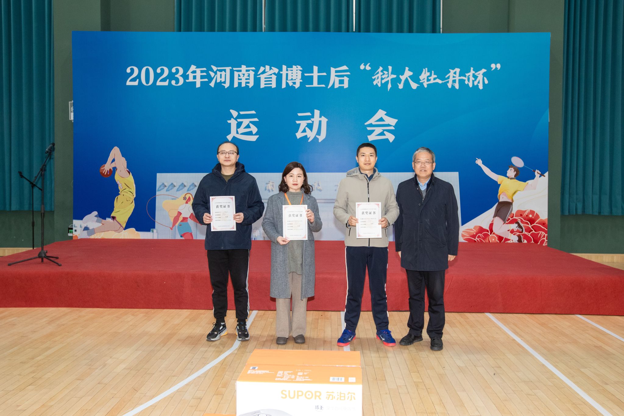 我校博士后代表队经过为期两天的顽强拼搏,最终在乒乓球男单、跳绳男子组项目荣获第一名。我校和郑州大学、河南大学、河南师范大学、河南理工大学、河南中医药大学、河南农业大学、洛阳市、周口市和平顶山市荣获本次运动会优秀组织奖。河南工业大学、华北水利水电大学、郑州市、商丘市、濮阳市、信阳市荣获本次运动会体育道德风尚奖。