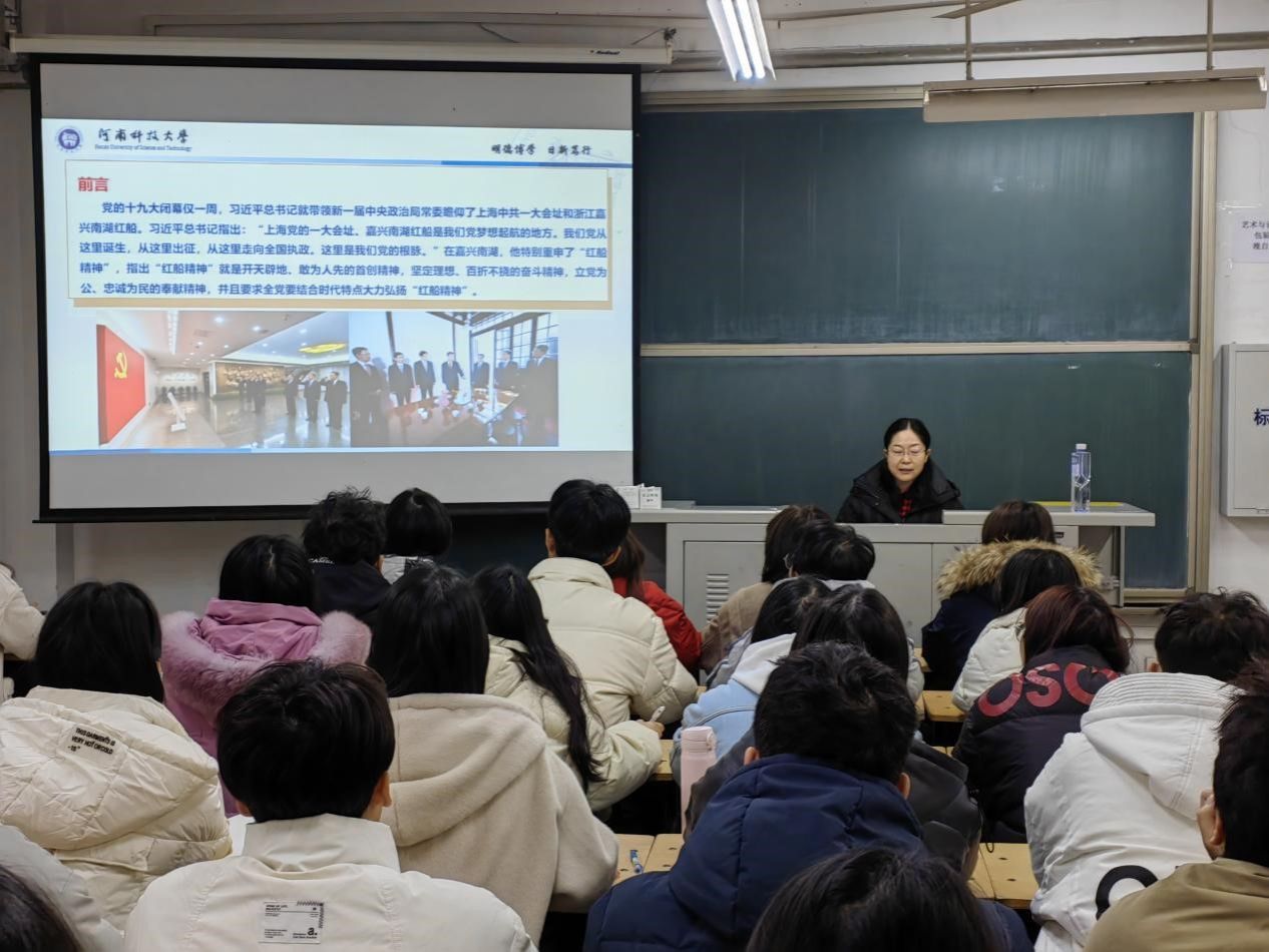 校新闻中心讯 12月15日上午,校党委副书记、工会主席杨霞以《学习红船精神、扬起奋斗风帆》为题为艺术与设计学院师生讲授了一场专题思政课。思政课由艺术与设计学院党委书记贾林红主持。