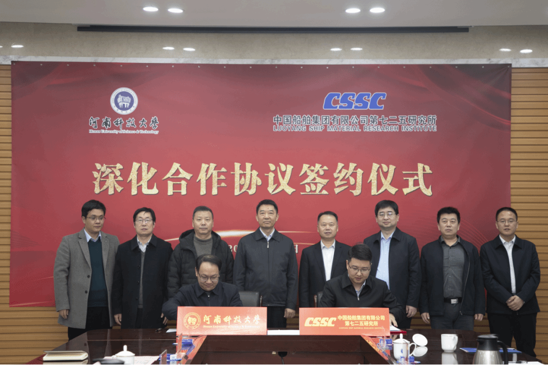 校新闻中心讯 1月11日,我校与中国船舶集团有限公司第七二五研究所举行深化合作协议签约仪式。党委书记、校长王洪彬,中国船舶集团有限公司第七二五研究所所长王其红,副校长吴庆涛,七二五所副所长孙磊出席签约仪式。仪式由党政办公室主任孟玉勤主持。