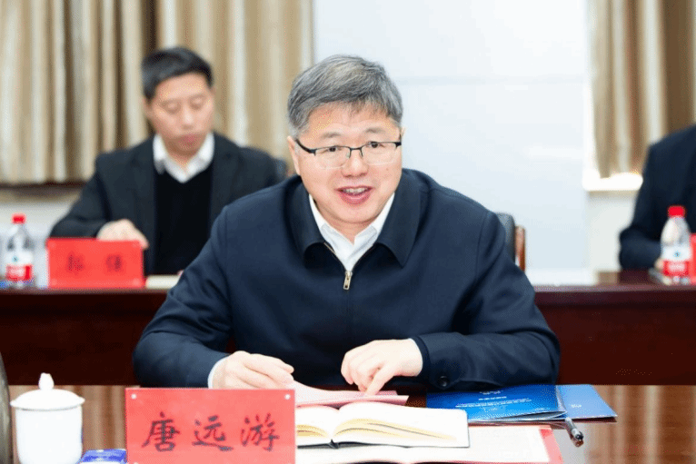 王洪彬代表学校对唐远游一行到访表示热烈欢迎,并简要介绍学校的历史沿革、办学特色和在人才培养、科学研究、学科建设、科研平台建设等方面的做法和成效,以及材料科学与工程、机械工程2个河南省“双一流”创建学科在有色金属、轴承等领域的特色优势。他表示,学校将在河南省国防科学技术工业局的指导和支持下,面向国家战略需求,发挥自身优势,加强与科研院所协同创新,持续提升科技创新和人才培养能力,努力为高水平科技创新自立自强和地方社会经济发展做出积极贡献。