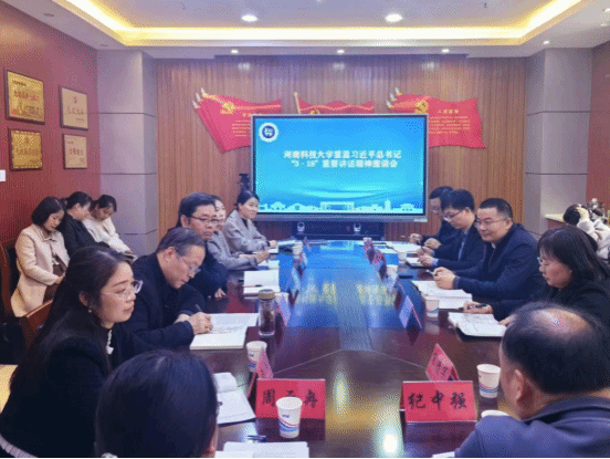 校新闻中心讯 近日,为深入学习贯彻习近平总书记“3·18”重要讲话精神,进一步推动思政课高质量发展,学校在文科楼812会议室召开重温习近平总书记“3·18”重要讲话精神座谈会。党委宣传部、教务处、社科处等职能部门负责人,马克思主义学院全体班子成员、党支部书记、教研室主任、教师代表参加座谈会。
