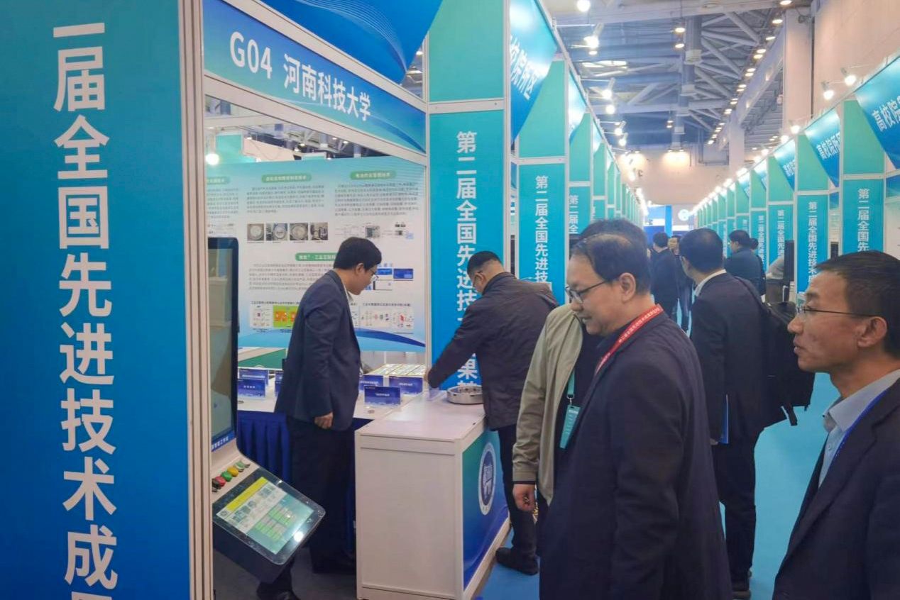 此次大会共有来自全国的45所高校受邀参会。我校展区以实物、展板等形式集中展示了学校在智能制造工业互联网平台、高性能轴承非静态摩擦学设计技术、铜基微细导体材料加工技术等领域的12项科技成果。