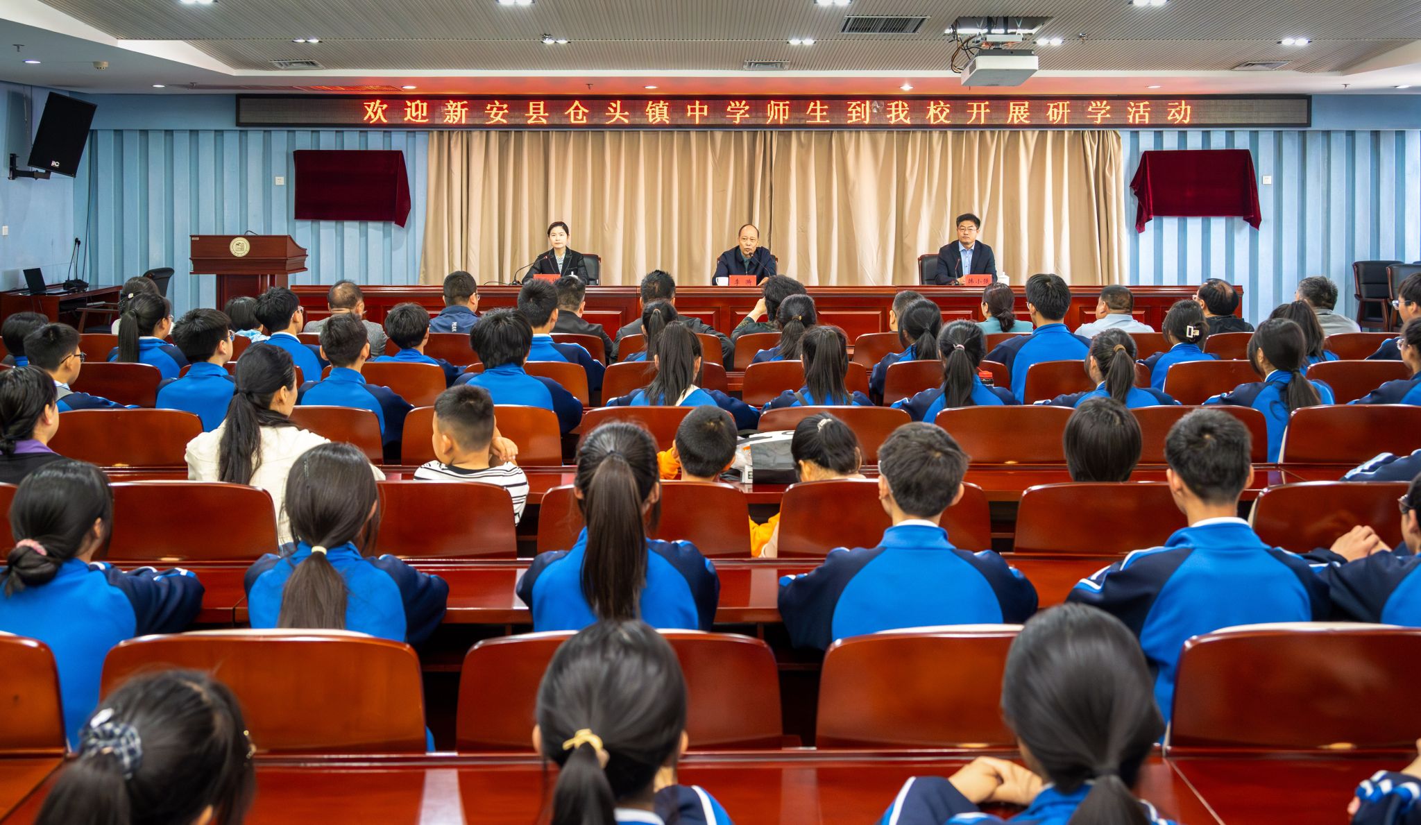 校新闻中心讯 近日,新安县仓头镇中学近100余名师生到我校开展研学活动。校党委副书记、工会主席杨霞,关工委常务副主任李漪及新安县仓头镇党委书记韩小强出席活动,会议由校关工委秘书长闫淑楠主持。