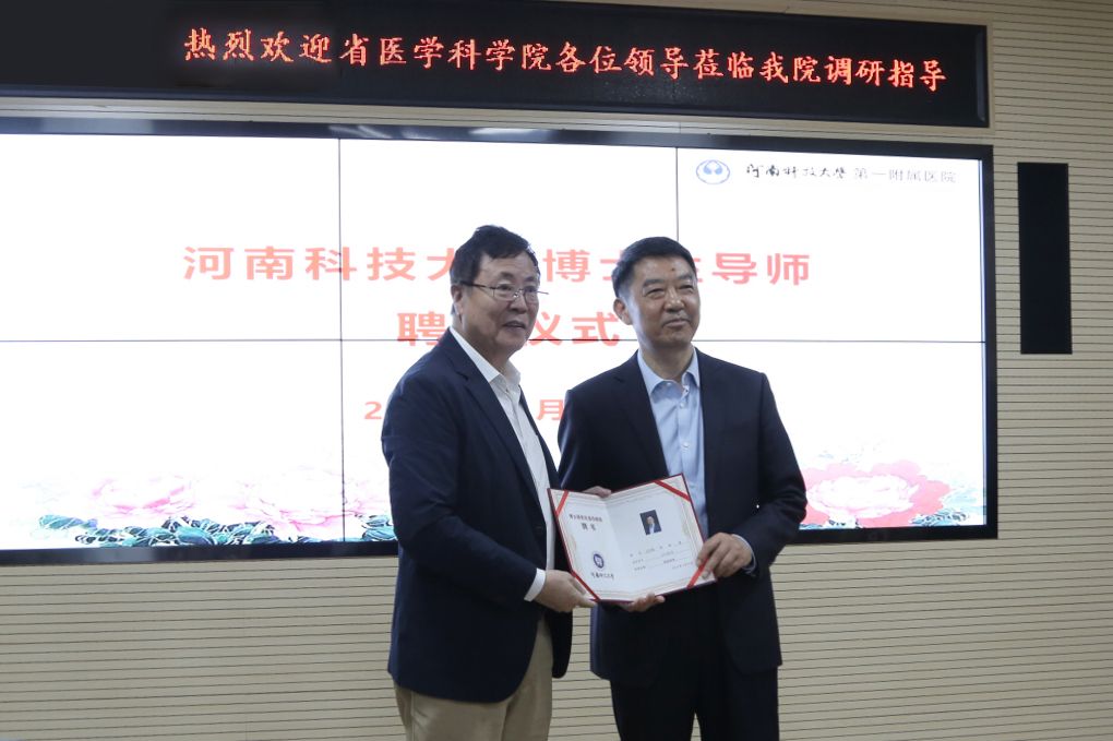 河南省医学科学院、洛阳市卫健委、我校相关职能部门负责同志参加座谈交流。