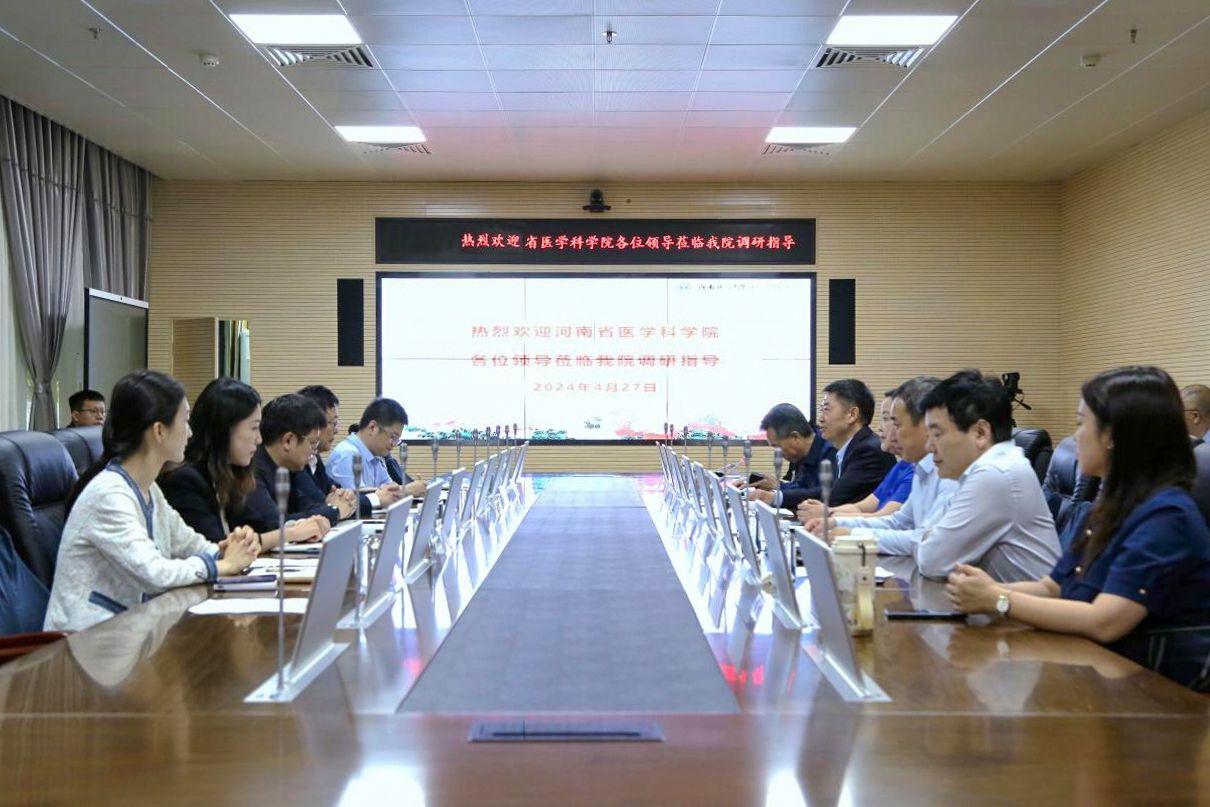 校新闻中心讯 4月27日,河南省医学科学院院长王宁利、副院长高远一行来校调研交流。党委书记、校长王洪彬,洛阳市卫健委党组书记、主任李金乐等参加座谈交流。