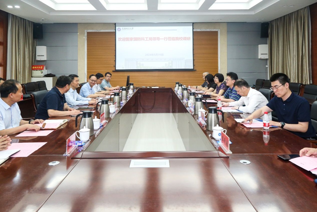 校新闻中心讯 5月19日,国家国防科工局十司副司长于国斌一行来校调研指导工作,河南省国防科工局等单位负责同志陪同调研。党委书记、校长王洪彬,副校长吴庆涛参加座谈交流。