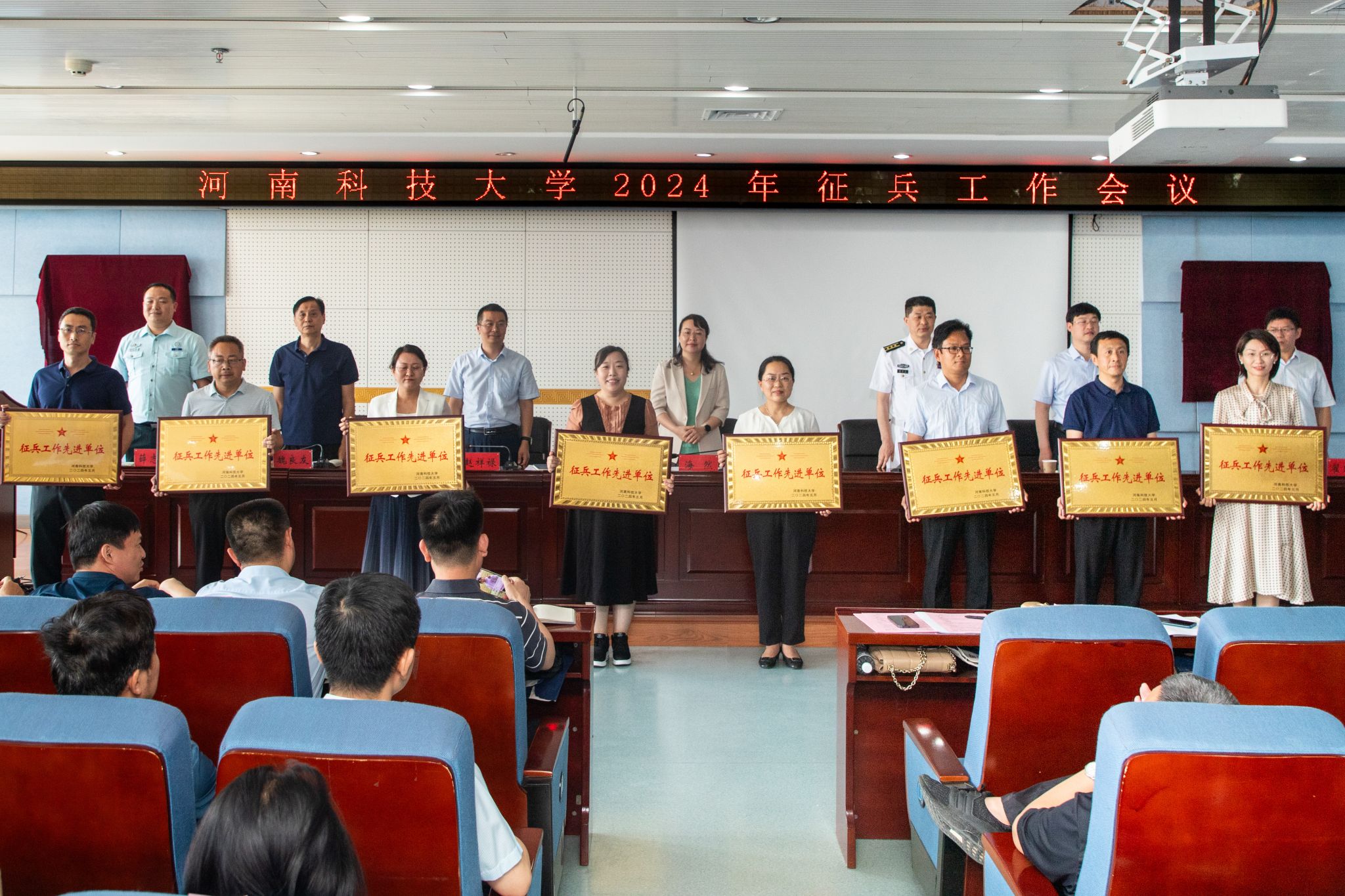 校新闻中心讯 5月23日,学校2024年征兵工作会议召开。校党委副书记海然,涧西区武装部政委秦绪昌上校,党委宣传部、党委武装部、各学院(书院)相关负责同志及2024届毕业班辅导员等参加会议。
