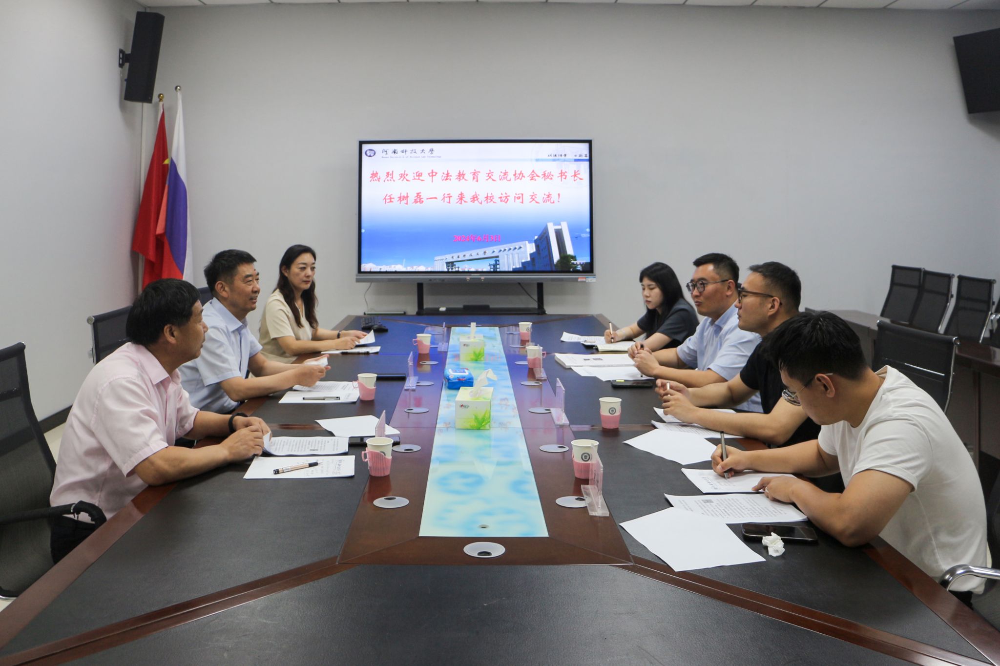 王洪彬对任树磊一行的来访表示欢迎,对中法教育交流协会长期致力于推动中法教育合作交流表示感谢。他简要回顾了双方合作的历史,对后续进一步深化合作交流充满期待,希望双方在现有基础上,开展更为紧密的合作,共创中法教育科技文化交流新局面。