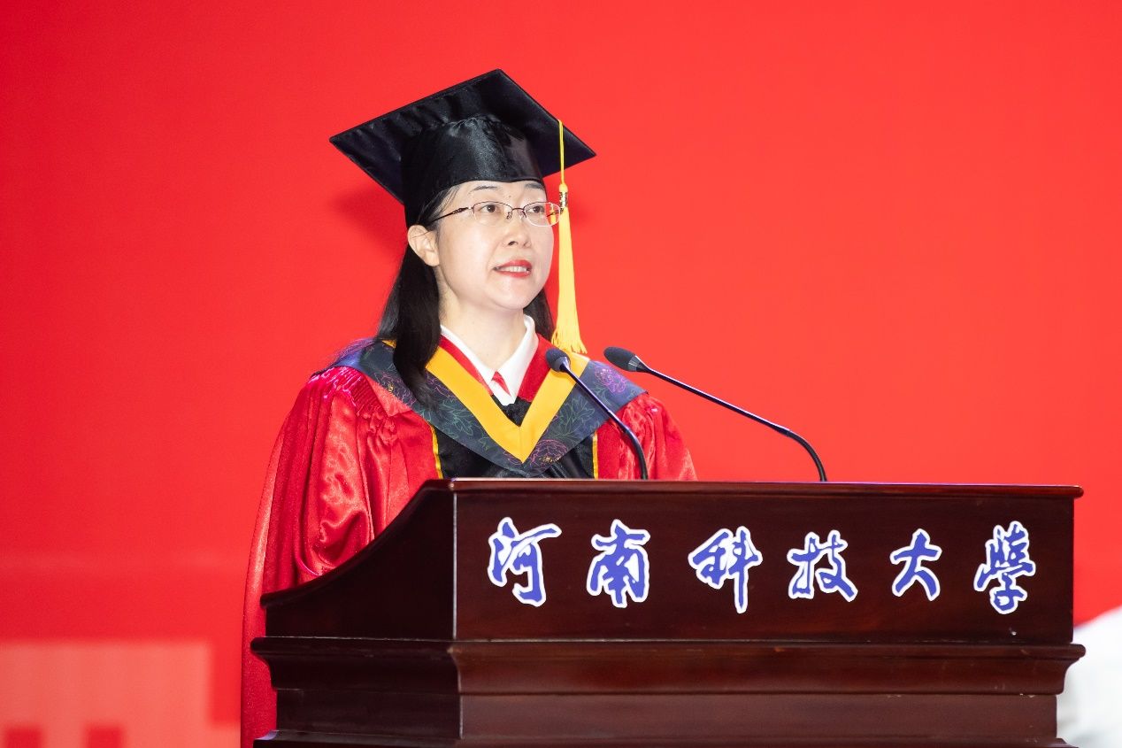 教师代表、农业装备工程学院院长金鑫鼓励毕业生们不忘勤奋学习,保持乐观上进,脚踏实地、大胆逐梦、乘风破浪、勇毅前行,做出无负时代、无负历史、无负人民的业绩。