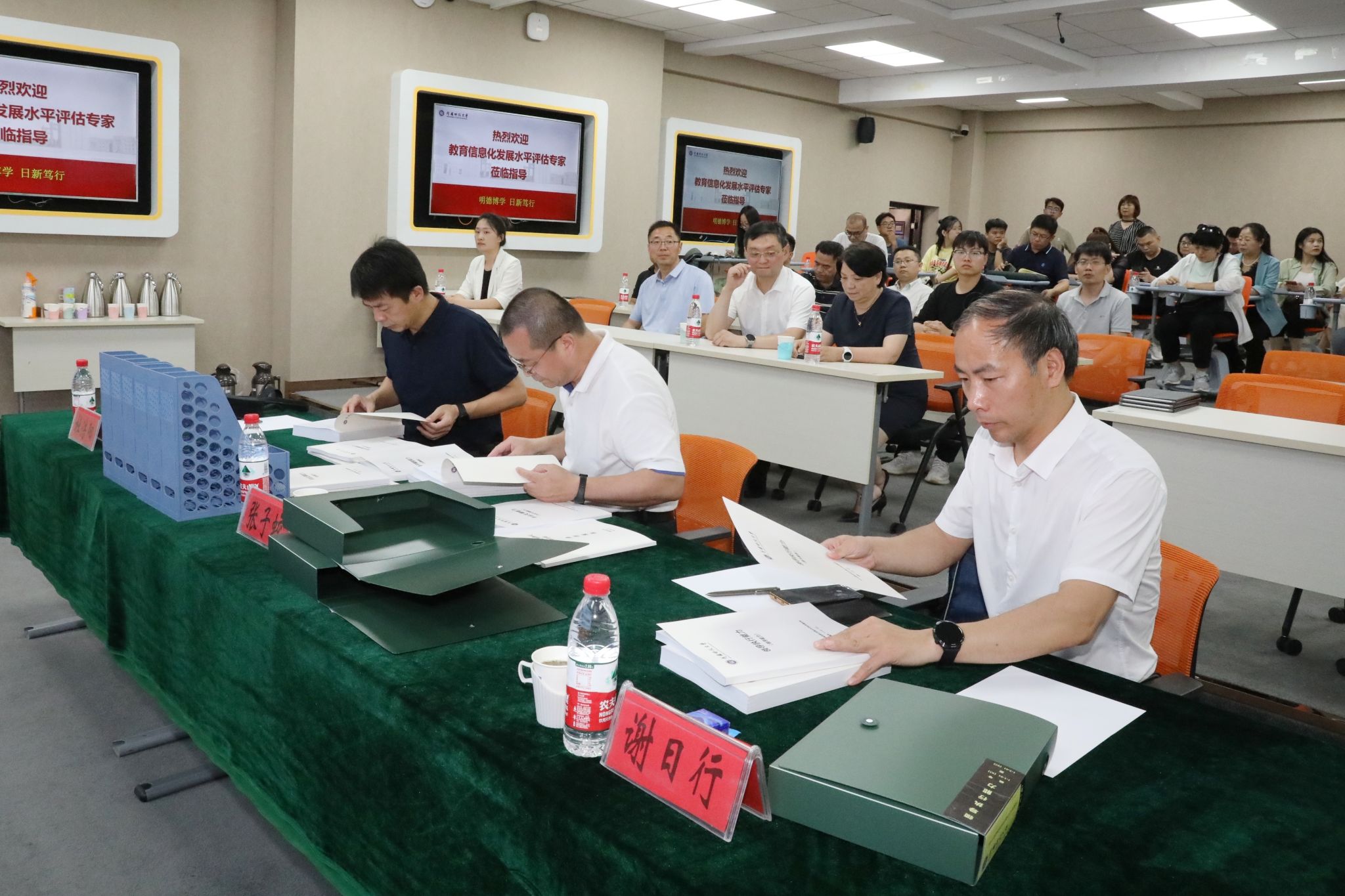 汇报会后,评估组进行了深度访谈,实地查看了智慧教室等地,采用无记名方式对师生信息化素养进行现场考试,对照评估指标体系详细查阅相关资料,并进行现场质询,对学校信息化建设情况进行全面评估检查。