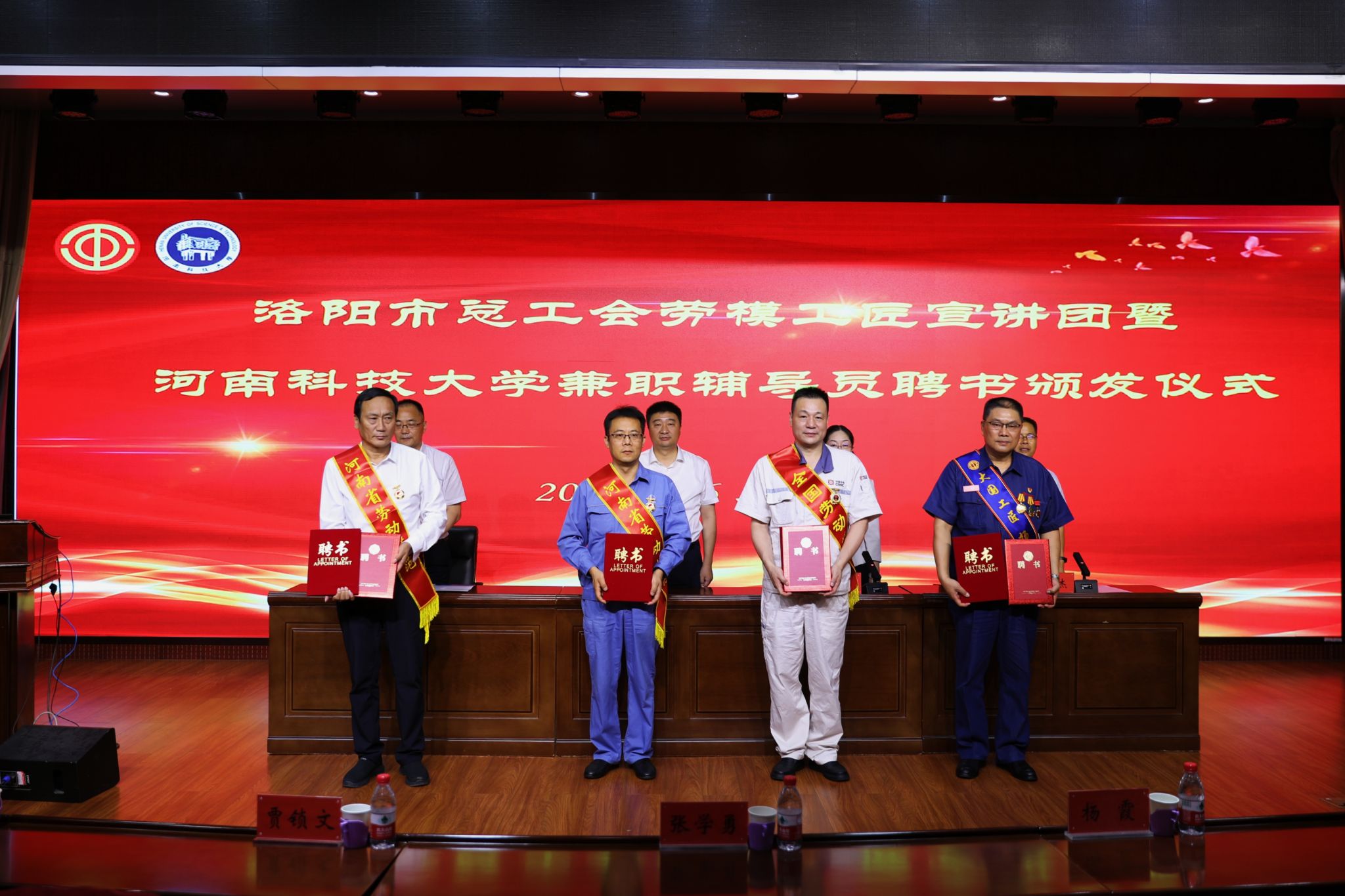 宣讲开始前,与会领导分别为四位劳模工匠颁发了“洛阳市总工会劳模工匠宣讲团成员”和“正规博彩平台劳模工匠兼职辅导员”聘书。