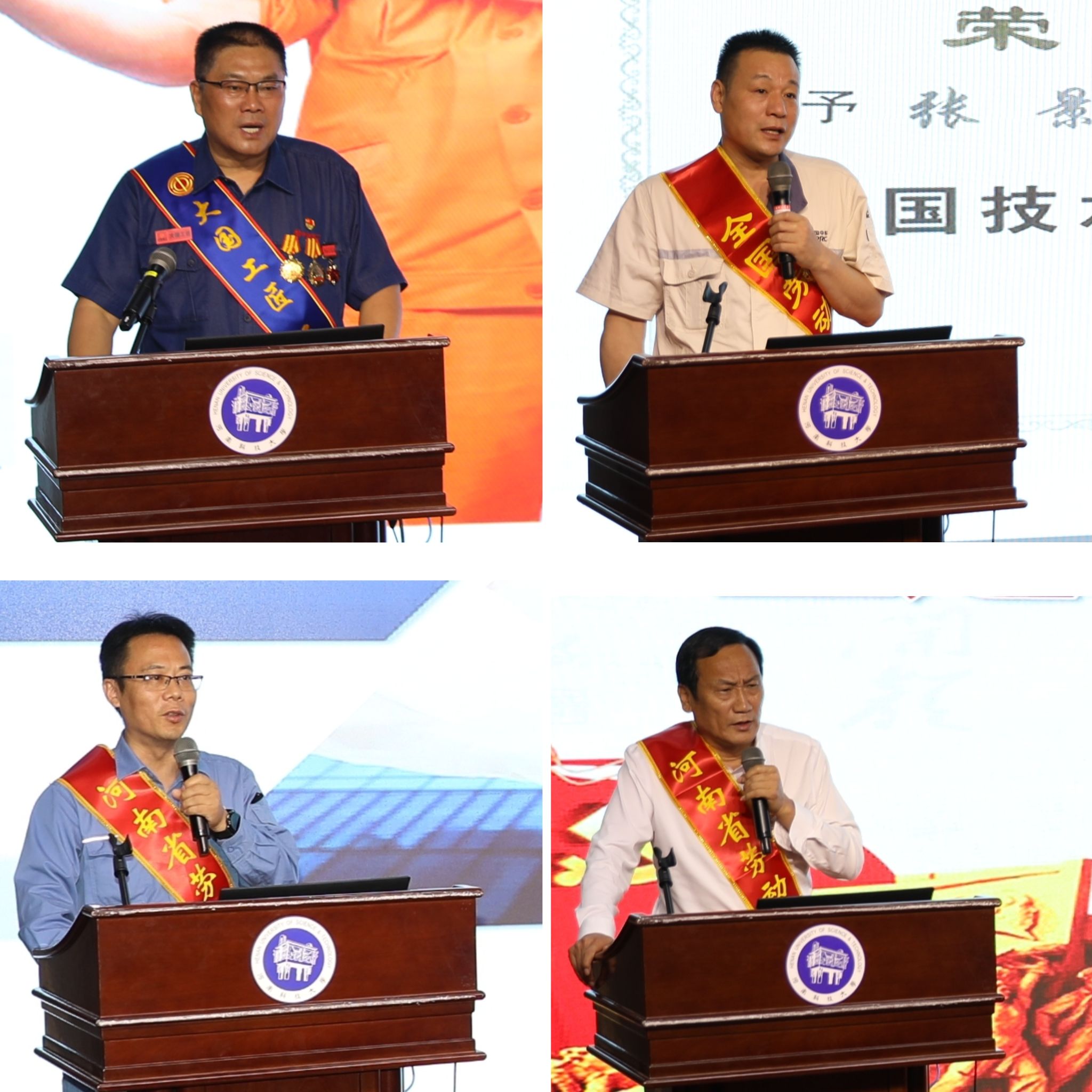大国工匠、中信重工机械股份有限公司重型铸锻公司冶炼车间电炉班班长杨金安,全国劳动模范、中车洛阳机车有限公司电焊工高级技师张景,河南省劳动模范、中国石化洛阳石化公司首席技师居斌,河南省劳动模范、新安县磁涧镇礼河村党支部书记、村委会主任张三,四位劳模工匠分别结合自己的成长成才经历,用质朴的语言、真挚的情感、生动的事例,分享了自己的励志故事,给师生上了一堂生动鲜活的思政课。