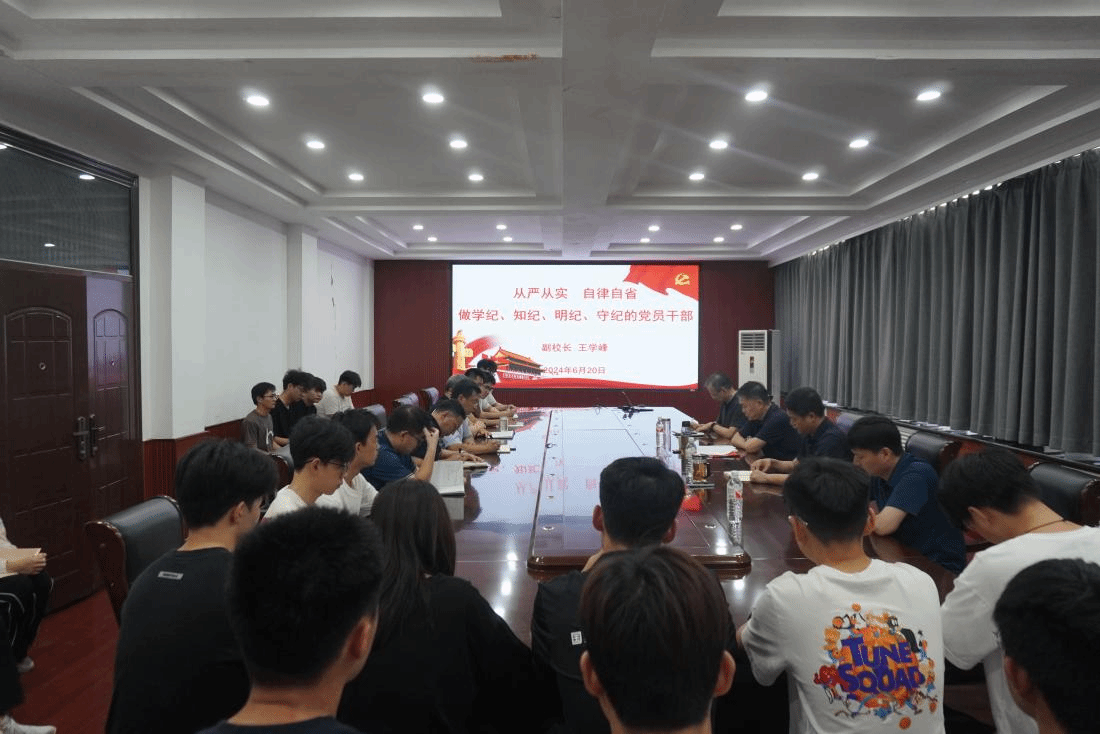 王学峰以《从严从实 自律自省 做学纪、知纪、明纪、守纪的党员干部》为主题,围绕贯彻“学纪、知纪、明纪、守纪”四个方面,从我党纪律建设的历史沿革、遵守执行《条例》的实践要求两大方面进行深刻生动的阐述。他指出,所有党员要树立正确历史观,从中国共产党103年发展历程中深刻理解领会加强纪律建设的必然要求,做学纪、知纪的党员干部;党员干部要深学细悟笃行,全面对照《条例》做好贯彻落实,做明纪、守纪的党员干部。最后,王学峰以近期通报的违反党规党纪典型案例为切入点,提醒所有党员同志要加强自身党性修养、规范自身言行举止,切实发挥党员的先锋模范带头作用。