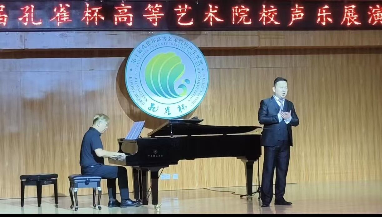 校新闻中心讯 近日,第十届"孔雀杯"全国高等艺术院校声乐展演在广州举行,来自全国300余所高校的近3700名师生参加了本次展演。经过展演、总展演两轮比赛,我校艺术与设计学院青年教师谈景星博士以出色表现在音乐艺术院校展演选手中脱颖而出,荣获“银孔雀杯”。