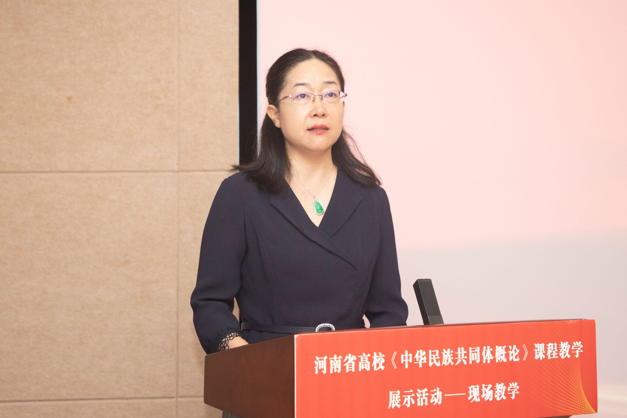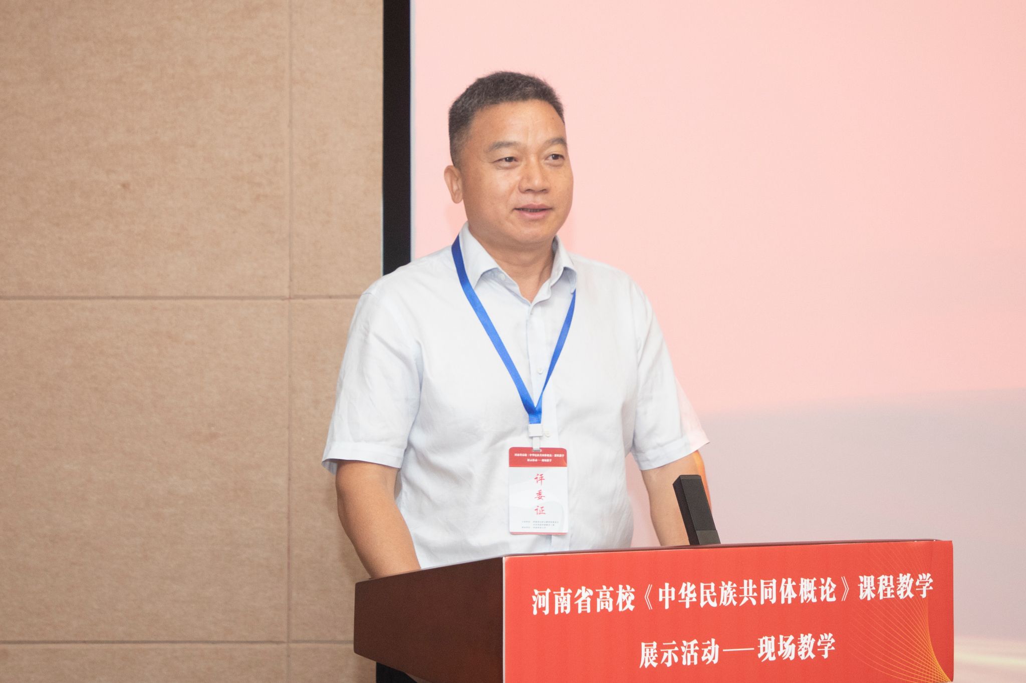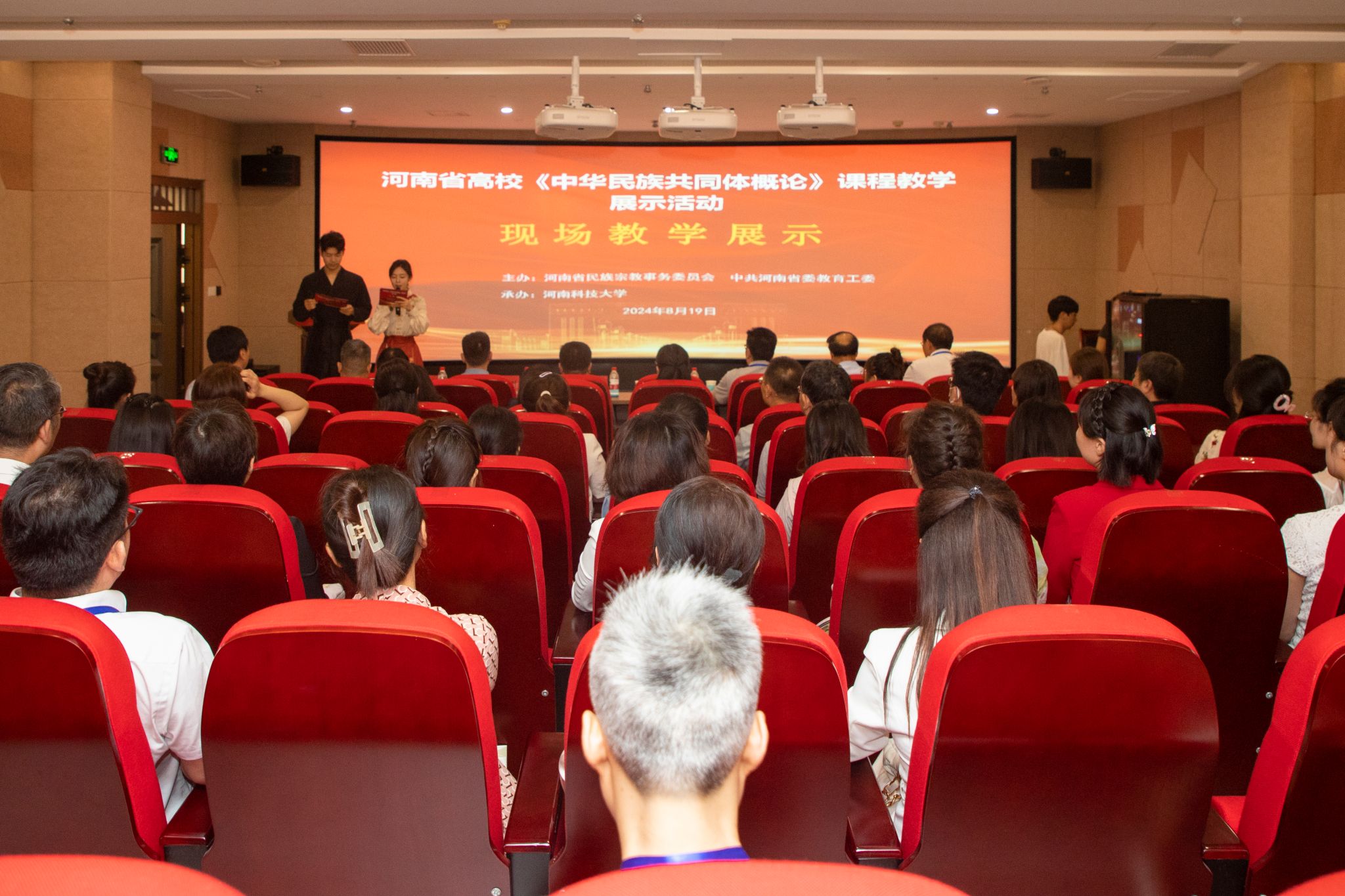 校新闻中心讯 8月19日,由河南省民族宗教委、中共河南省委教育工委主办,我校承办的河南省高校《中华民族共同体概论》课程现场教学展示活动成功举办。河南省民族宗教委一处处长邵亚伟,中共河南省委教育工委组干(统战)处三级调研员高峰,校党委副书记、工会主席杨霞出席活动。来自全省15个本科高校、6个高职院校的25名参赛教师和党委统战部工作人员参加活动。