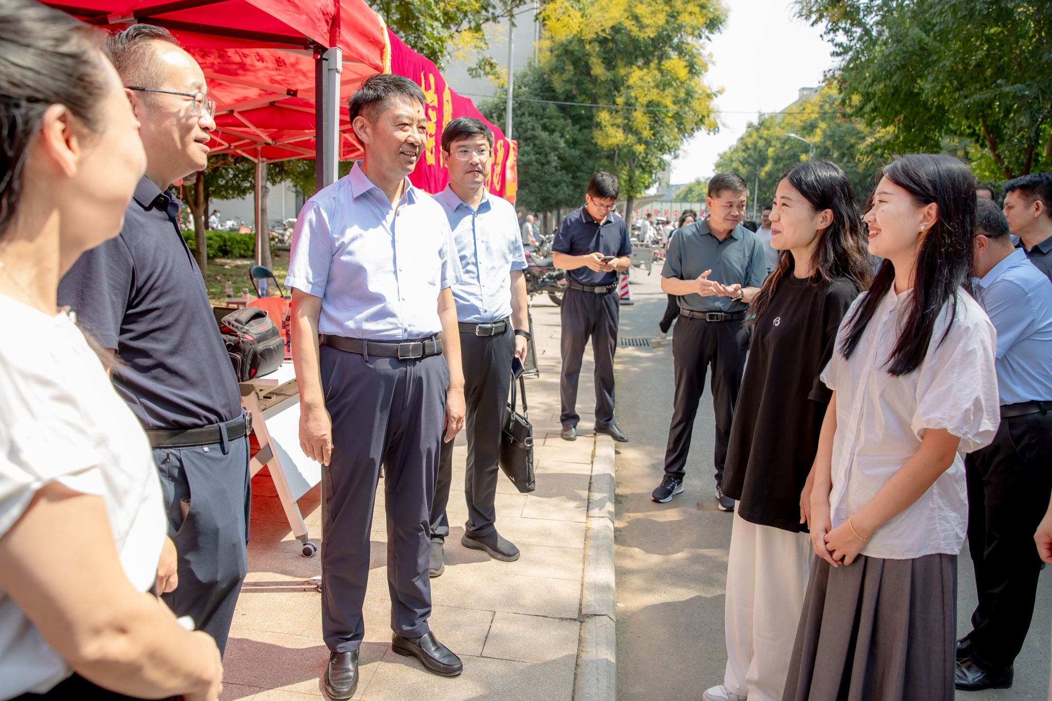 校领导王洪彬、海然、侯小改、王学峰等来到开元校区、西苑校区,看望前来报到的新生及亲友,慰问参加迎新工作的师生员工,检查指导迎新工作。