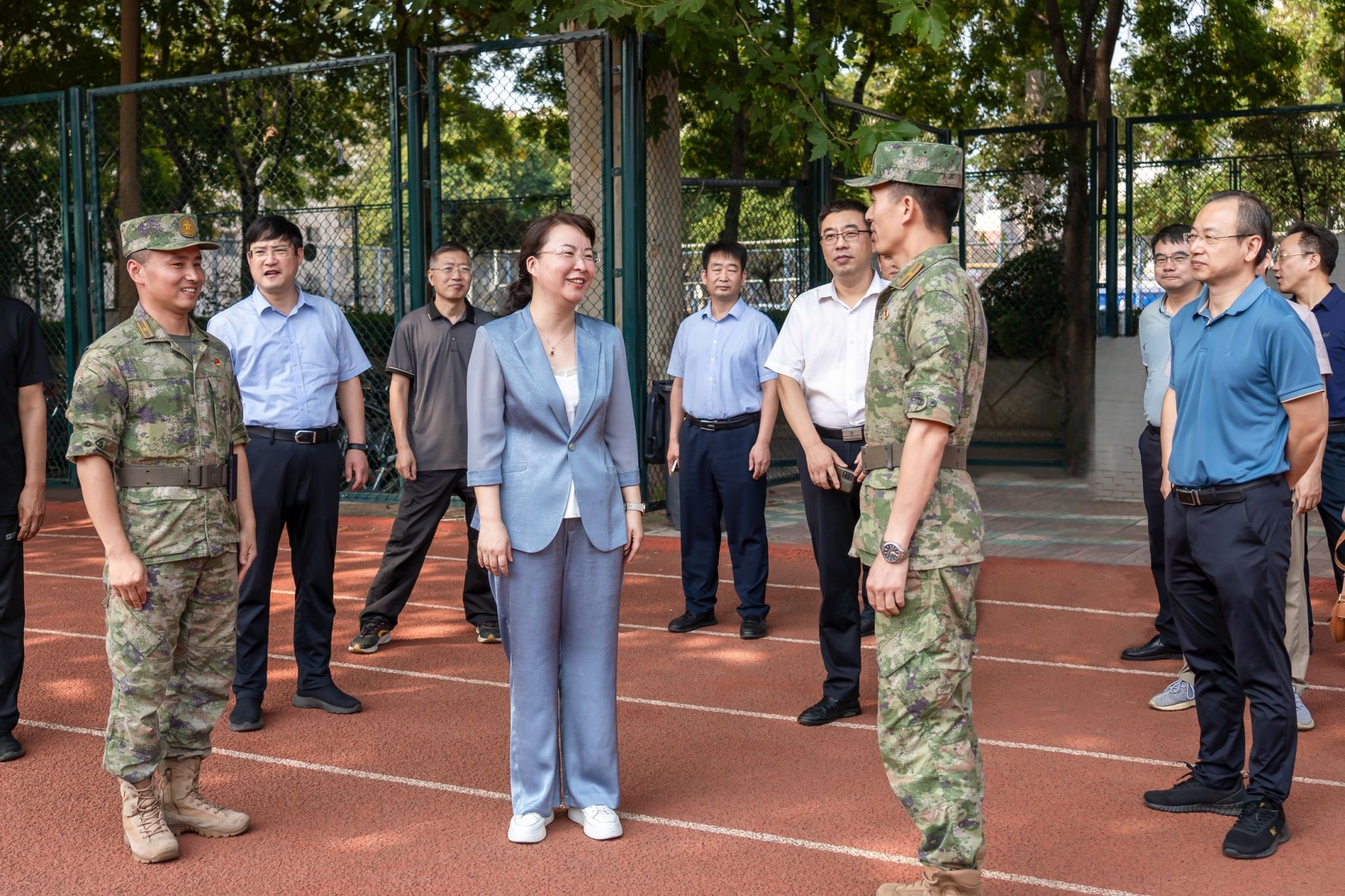 海然对承担本次军训任务的全体教官致以诚挚的慰问和衷心的感谢,对参训学生昂扬向上的精神面貌表示称赞。她表示,军训是大学新生入学第一课,是开展大学生思想政治教育和国防教育的重要环节,相关部门要高度重视军训工作,要将安全放在首位,科学施训,训出实效,通过军训让学生养成良好的生活习惯,增强学生的国防意识,引导学生厚植爱党爱国情怀。新生辅导员要抓好军训工作,积极与教官配合,加强与学生的沟通交流,与学生建立深厚的感情,切实提升军训的育人成效。各学院(书院)要切实加强值班值守,密切关注学生的思想动态和身体健康情况,筑牢安全底线,提供优质服务,确保军训工作平稳有序推进。