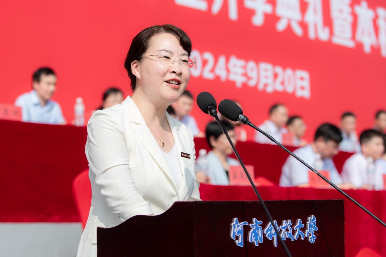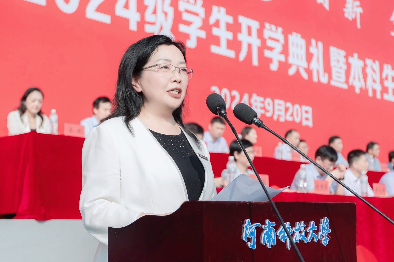 教师代表,车辆与交通工程学院徐立友、数学与统计学院李灵晓发言,向新生表示欢迎和祝贺,勉励新同学要秉承“明德博学、日新笃行”的校训,在大学播种梦想,合理规划,勇往直前,让个人价值与家国情怀同频共振,奋力书写为中国式现代化挺膺担当的青春篇章。