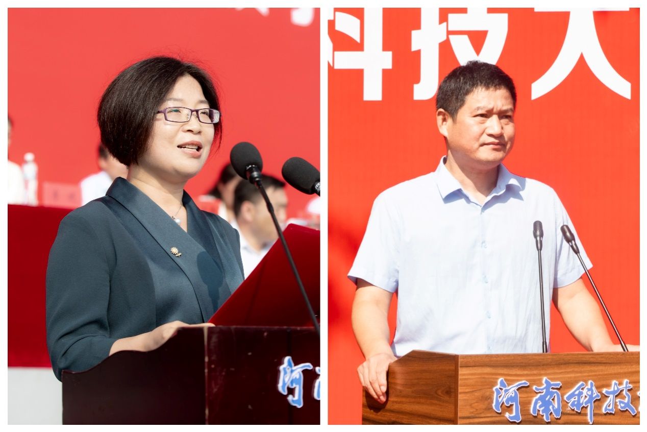 在校生代表,车辆与交通工程学院蒙治霖、农学院(牡丹学院)王菲发言,希望学弟学妹们立志做“有理想、敢担当、能吃苦、肯奋斗”的新时代好青年,用蓬勃的青春之力,为学校“双一流”创建贡献智慧和力量。
