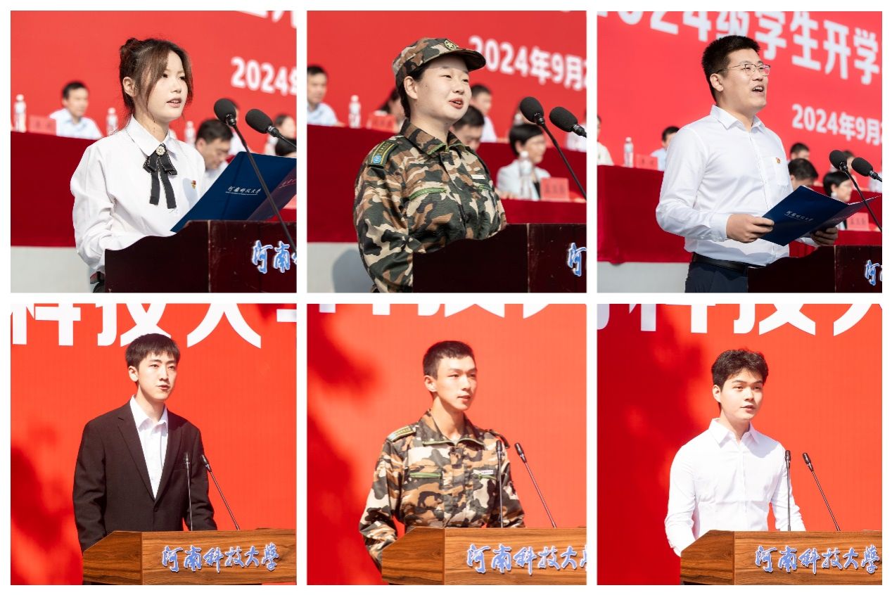本科新生代表,农业装备工程学院刘皓宇、食品与生物工程学院栾倚灵发言,表示要志存高远、笃力向前,努力成为德智体美劳全面发展的社会主义建设者和接班人,为实现中华民族伟大复兴的中国梦贡献自己的青春力量。