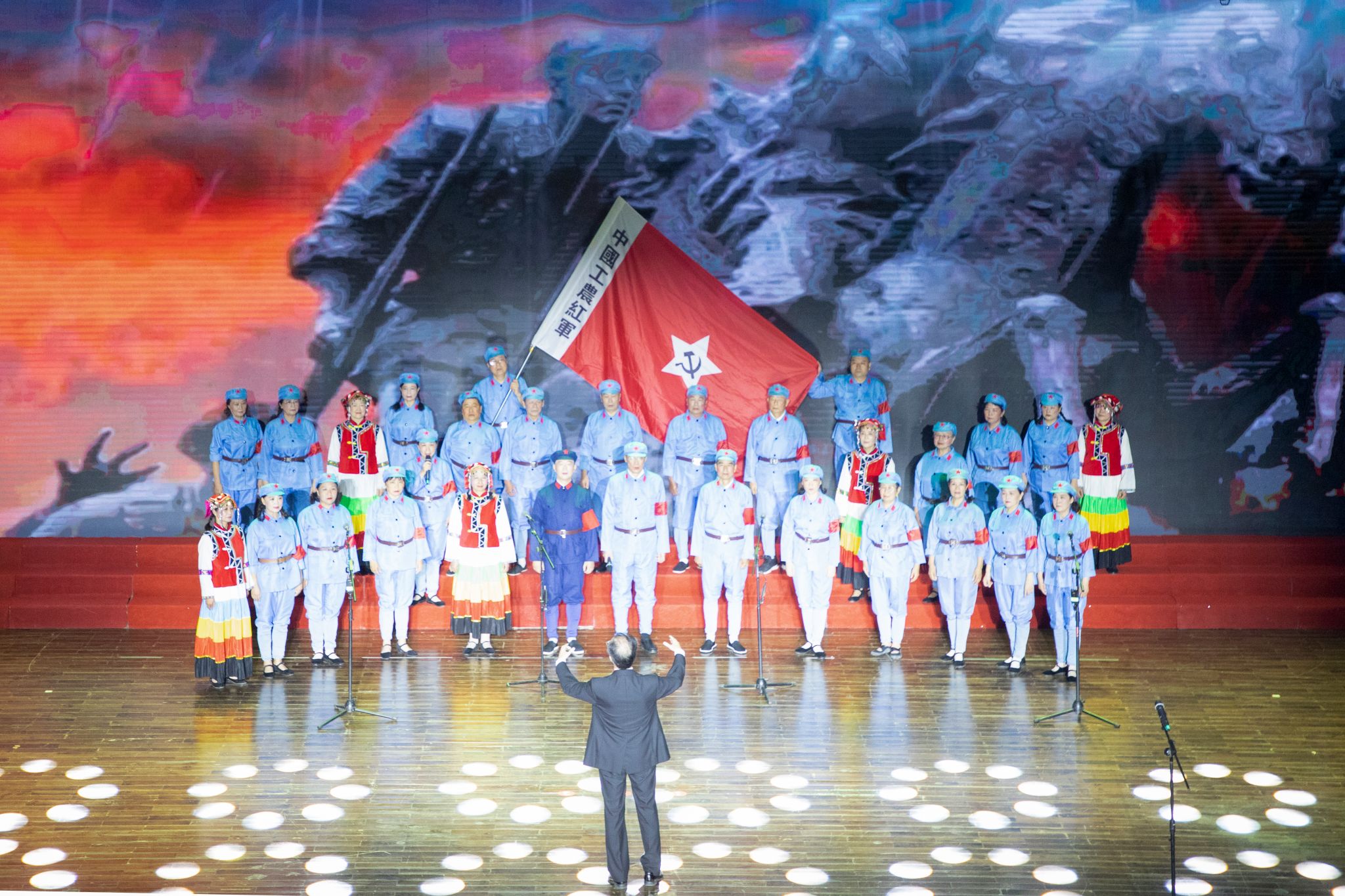 红旗、红歌、红装,红色元素溢满了整个演出现场,一片喜气洋洋的热烈氛围。最后,文艺汇演在大合唱《正规博彩平台校歌》慷慨激昂、催人奋进的旋律中圆满结束。