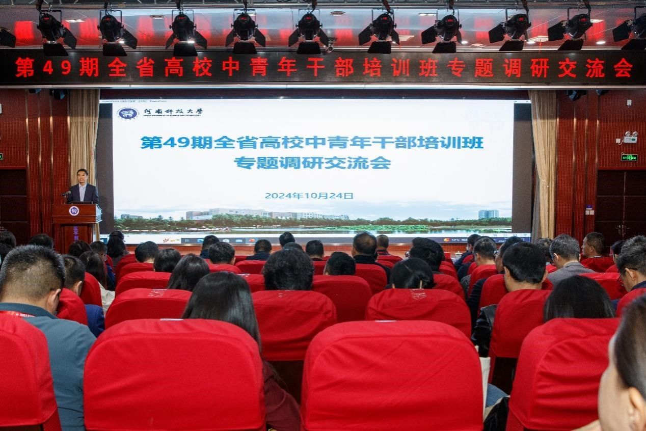 校新闻中心讯 10月24日,第49期全省高校中青班干部培训班130余名学员到我校开展“交流互鉴、优势互补、共学互促“专题调研活动。专题调研交流会议在医学教师发展中心召开。党委书记、校长王洪彬,党委副书记、工会主席杨霞,河南大学干部培训中心副主任、继续教育学院副院长张绍辉出席会议。