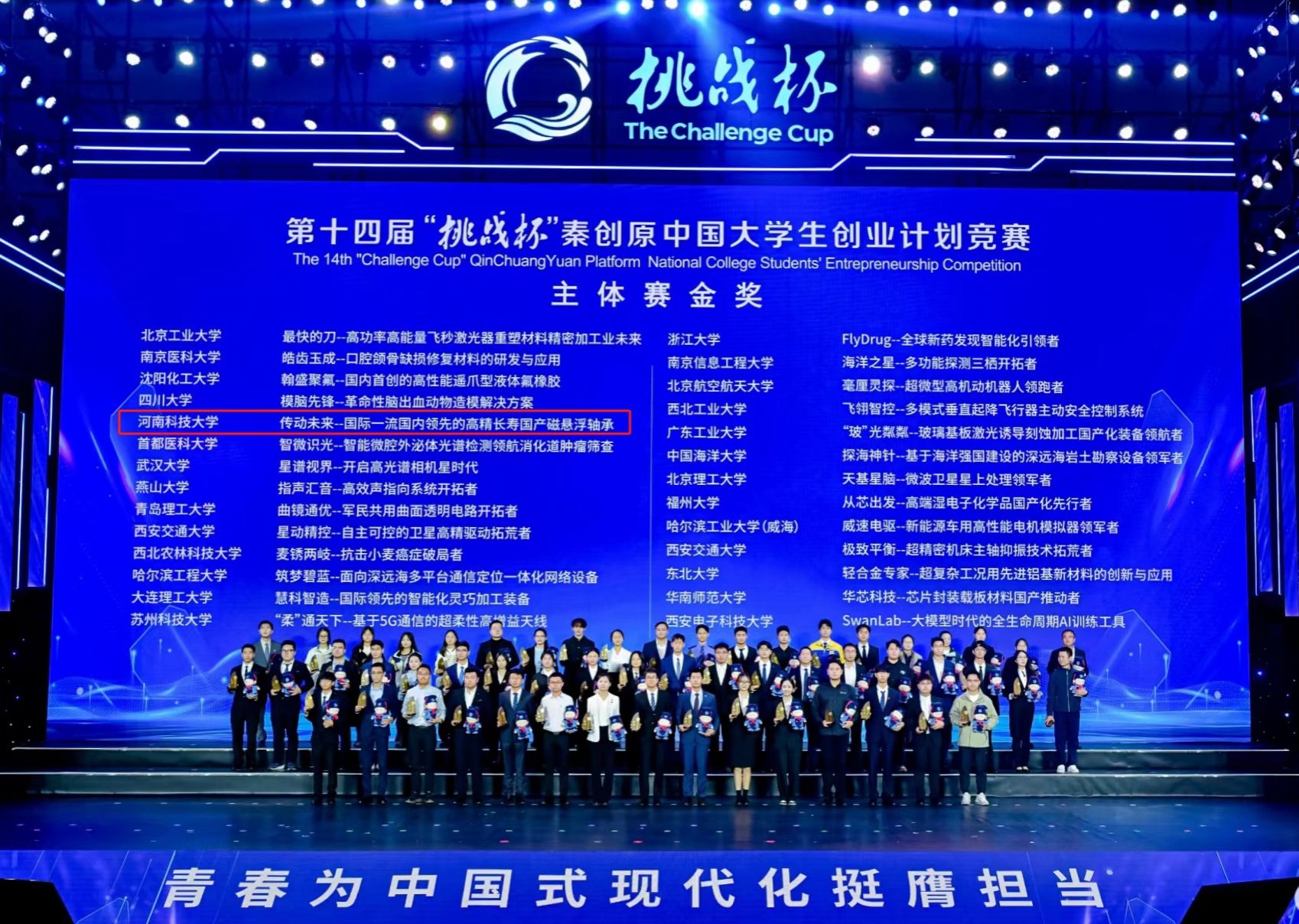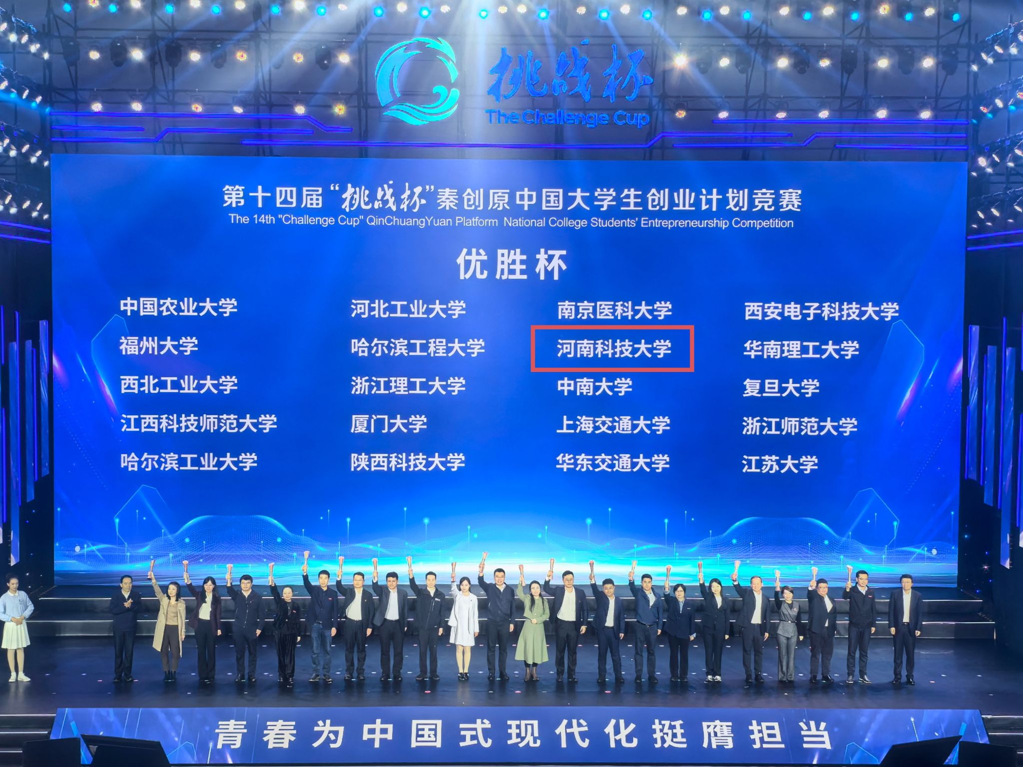 校新闻中心讯 11月2日,第十四届“挑战杯”中国大学生创业计划竞赛终审决赛在西安交通大学落下帷幕。经过激烈的角逐,我校在主体赛中斩获金奖1项、银奖2项、铜奖3项,学校荣获“优胜杯”,总成绩排名全国高校第27位,河南省首位。是继第十三届“挑战杯”中国大学生创业计划竞赛荣获2项金奖捧得“优胜杯”后再次捧得“优胜杯”。