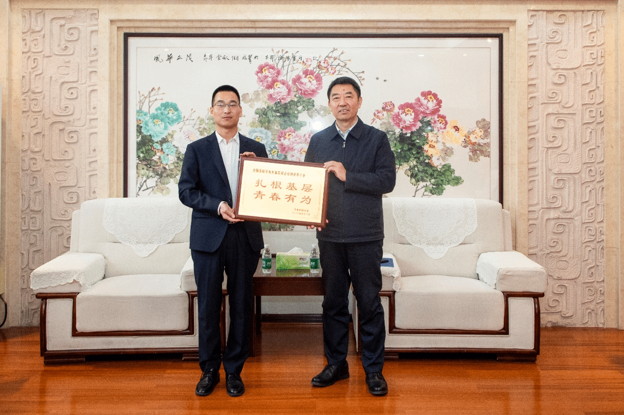 王洪彬对乔小全载誉归来表示欢迎,对他积极响应国家号召,毅然决然扎根基层、奔赴西部、投身祖国最需要的地方建功立业,先后获得全国第二届“闪亮的日子—青春该有的模样”“全国高校毕业生基层就业卓越奖”等荣誉给予高度赞扬和充分肯定。王洪彬向乔小全颁授“扎根基层 青春有为”牌匾,并勉励他牢记使命,继续在基层广阔天地书写绚丽华章,同时引领鼓励更多青年学子到基层展现青春作为。