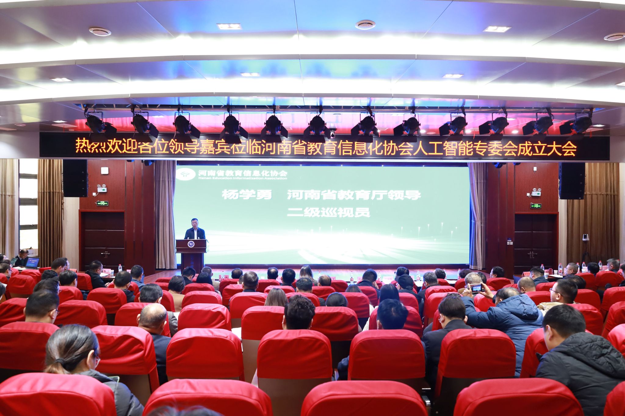 校新闻中心讯 近日,河南省教育信息化协会人工智能专业委员会成立大会在我校召开。河南省教育厅二级巡视员、科技与信息化处处长杨学勇,科技与信息化处主任郭晓枫,河南省教育信息化协会副会长刘守义、秘书长李霞,副校长吴庆涛、穆云超出席会议。来自全省高校、职业院校、基础教育以及人工智能企业的百余名代表参加会议。会议由河南省教育信息化协会副秘书长马照瑞主持。