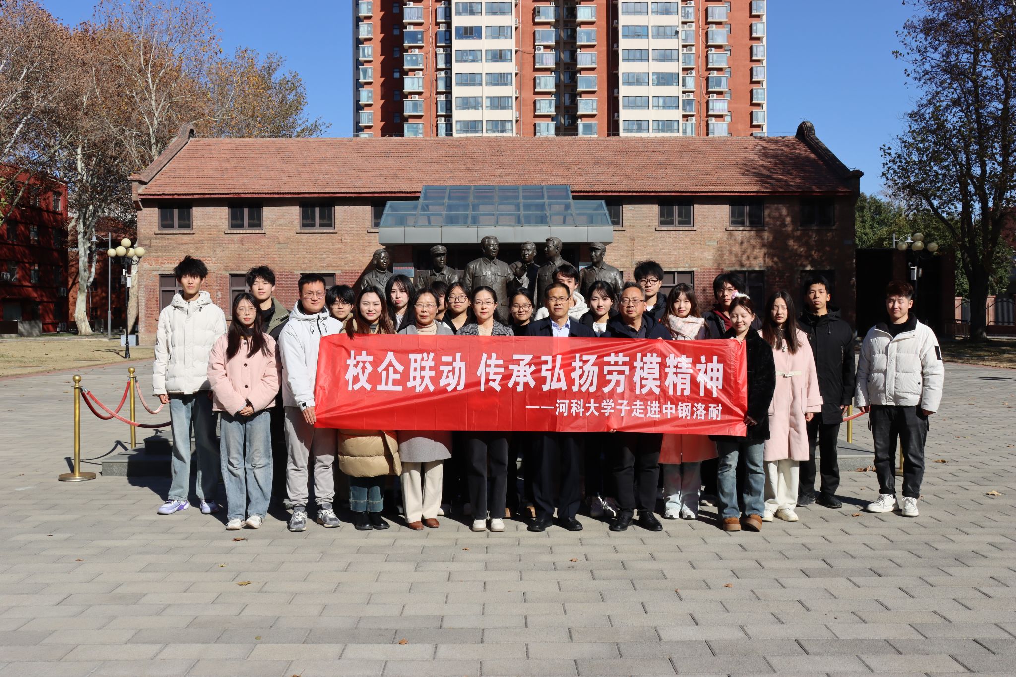 杨霞与联系班级艺术与设计学院工设231班学生在中钢洛耐共同开展“校企联动,传承弘扬劳模精神”教育实践活动。洛阳市总工会副主席贾锁文进行了劳模工匠思政课宣讲。活动中,大家共同参观了“不忘初心 信念永恒-洛耐职工怀念习仲勋同志展览”和“耐火材料诗书画印馆”。