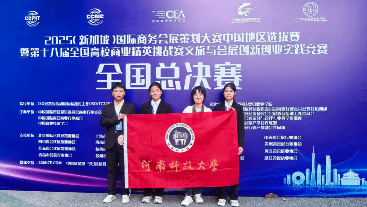 校新闻中心讯 11月29—12月2日,2025年(新加坡)国际商务会展策划大赛中国地区选拔赛暨第十八届全国高校商业精英挑战赛文旅与会展创新创业实践竞赛全国总决赛在广州科技贸易职业学院(番禺校区)举办,我校商学院组织的参赛队伍荣获本科生组一等奖1项,二等奖1项,三等奖1项。由高晓燕、乔静老师指导,曾嘉越、胡雨彤等同学完成的《“山韵养生,心归信阳”鸡公山康养旅游策划案》获得2025年新加坡商务活动策划大赛入围奖。我校荣获最佳院校组织奖。