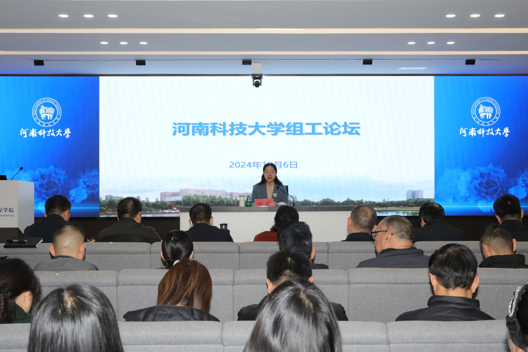 校新闻中心讯 12月6日,党委副书记、工会主席杨霞出席学校组工论坛,面向领导干部和师生党员讲授学习贯彻党的二十届三中全会精神专题党课。党委组织部部长程才主持专题党课。