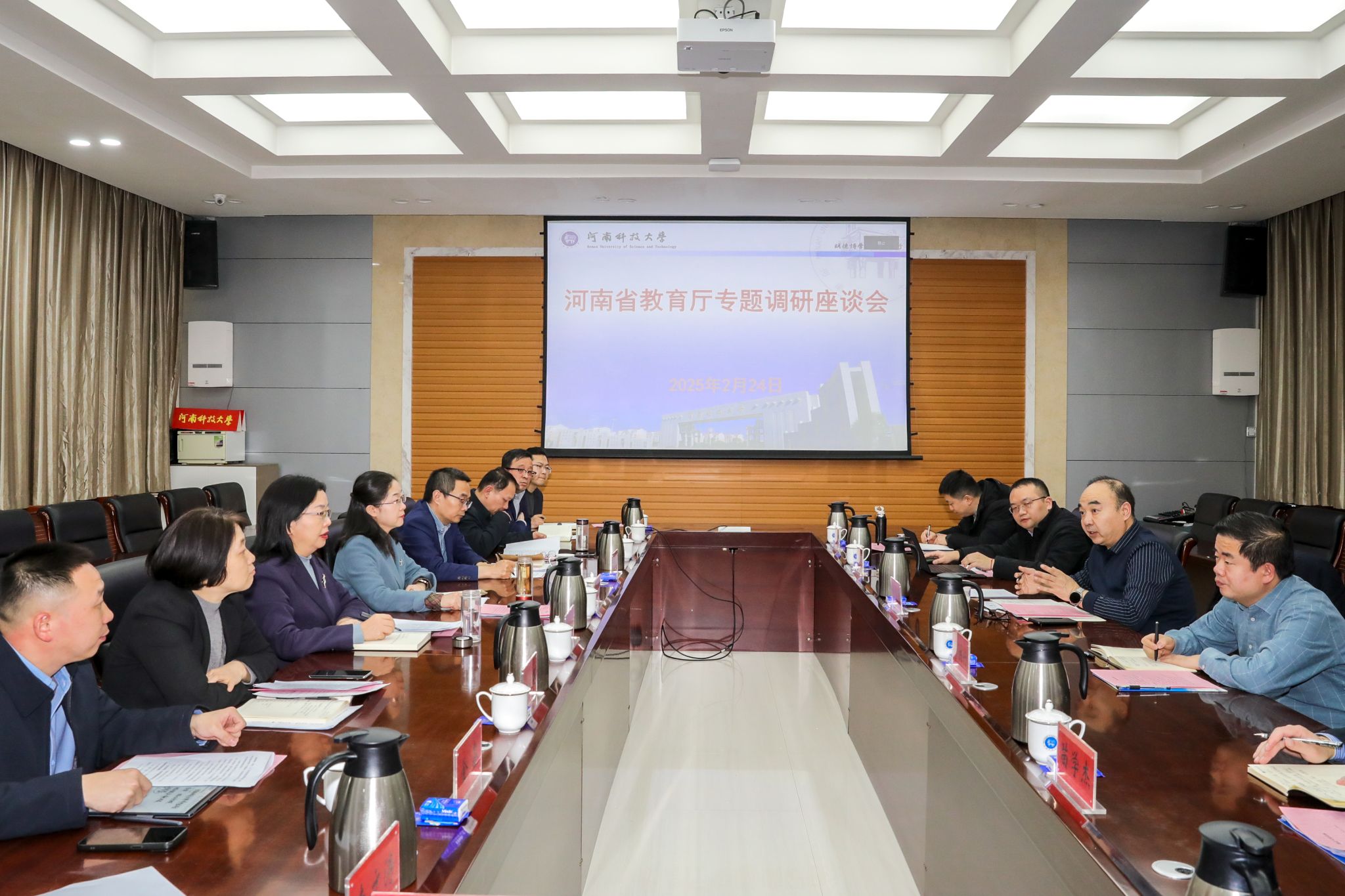 校新闻中心讯 2月24日,省教育厅二级巡视员曹克舜一行到校调研推进教育科技人才一体化发展工作。学校在博园第一会议室召开座谈会。校领导杨霞、庞新厂、侯小改、吴庆涛、由天艳、曹亦俊出席会议。